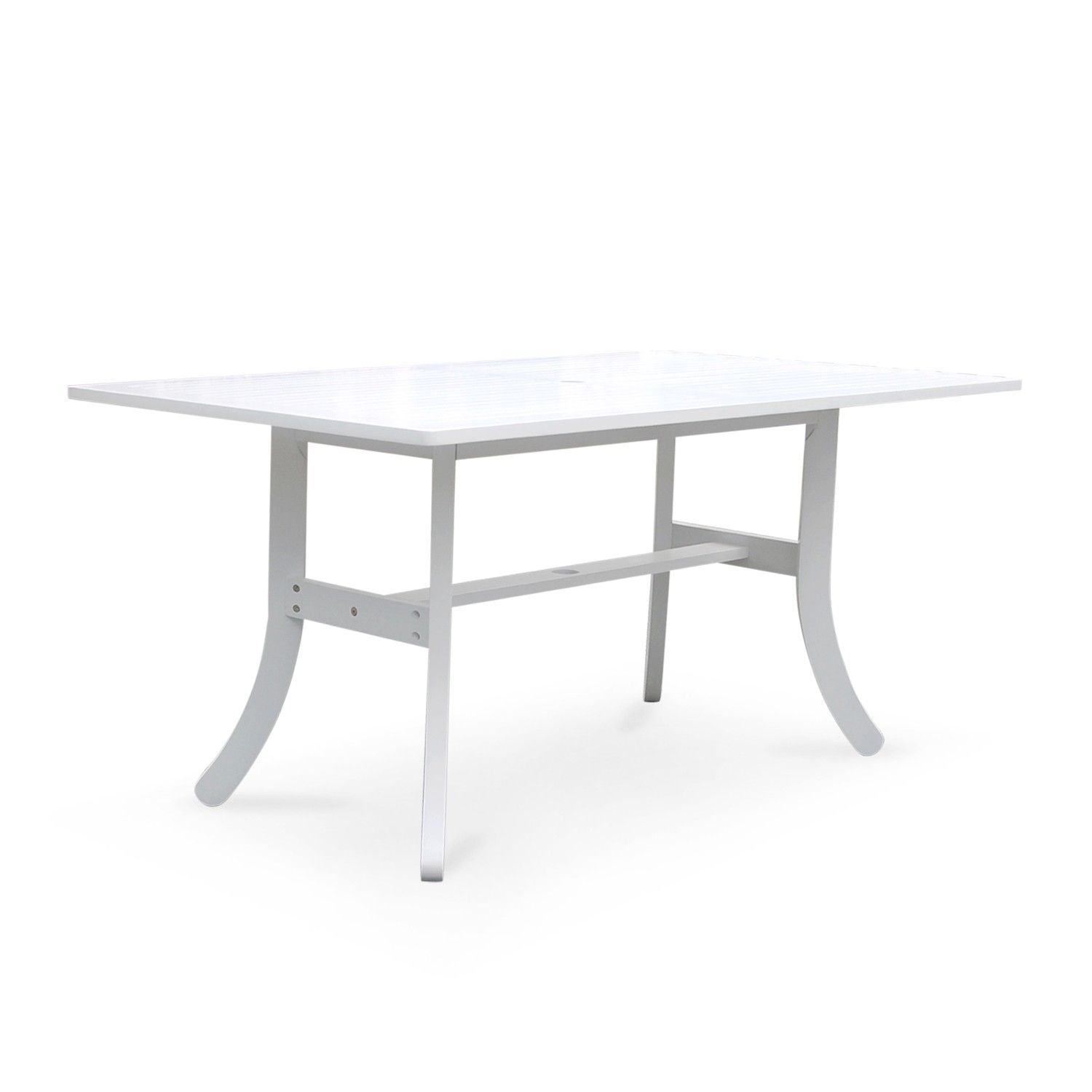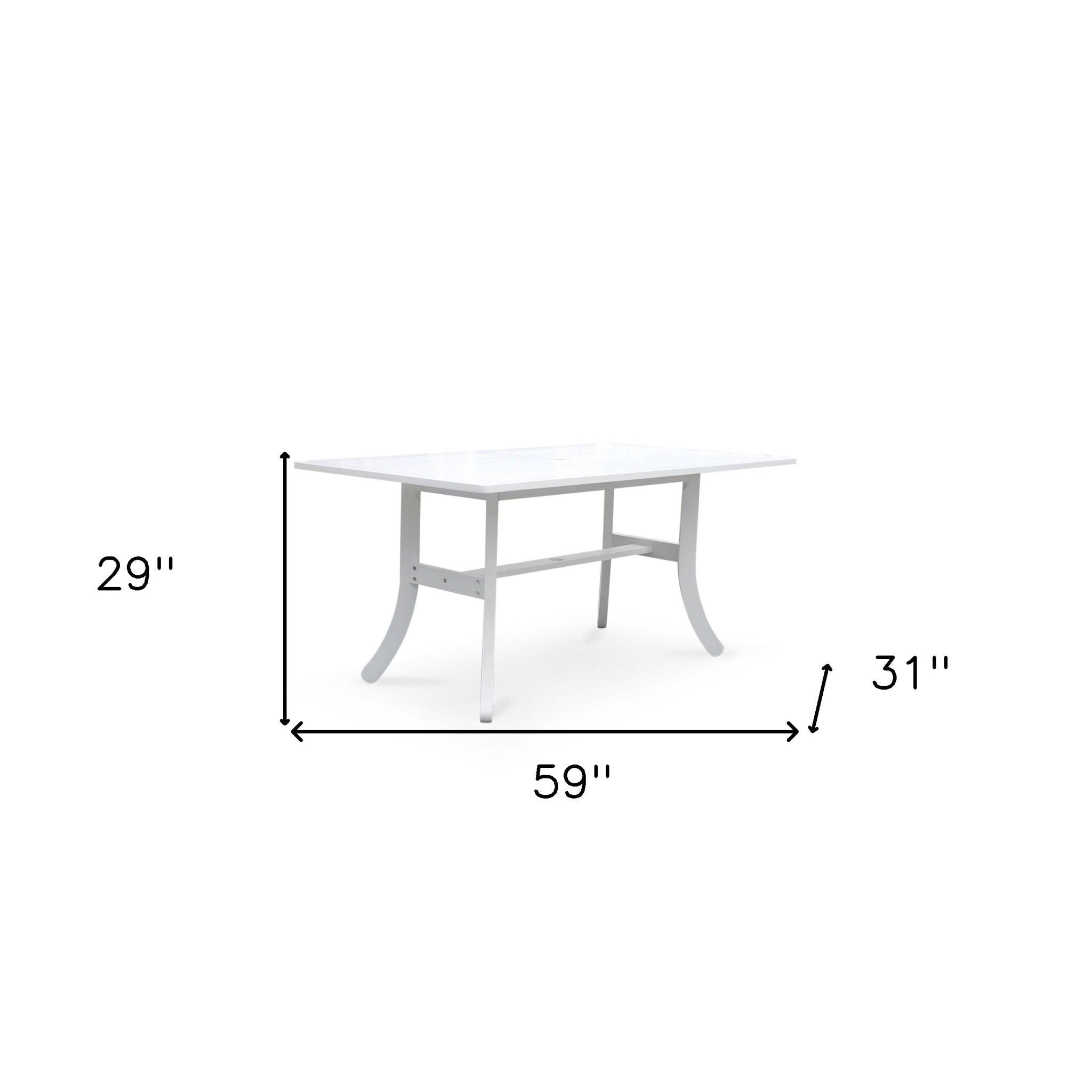 This White Dining Table with Curved Legs adds charm and functionality to your outdoor space. The unique leg design, slatted top, and gorgeous white finish highlight the attention to detail that this piece embodies. Comfortably sit six friends and family members at this sturdy and elegant dining table. 29" H x 59" W x 31" D
