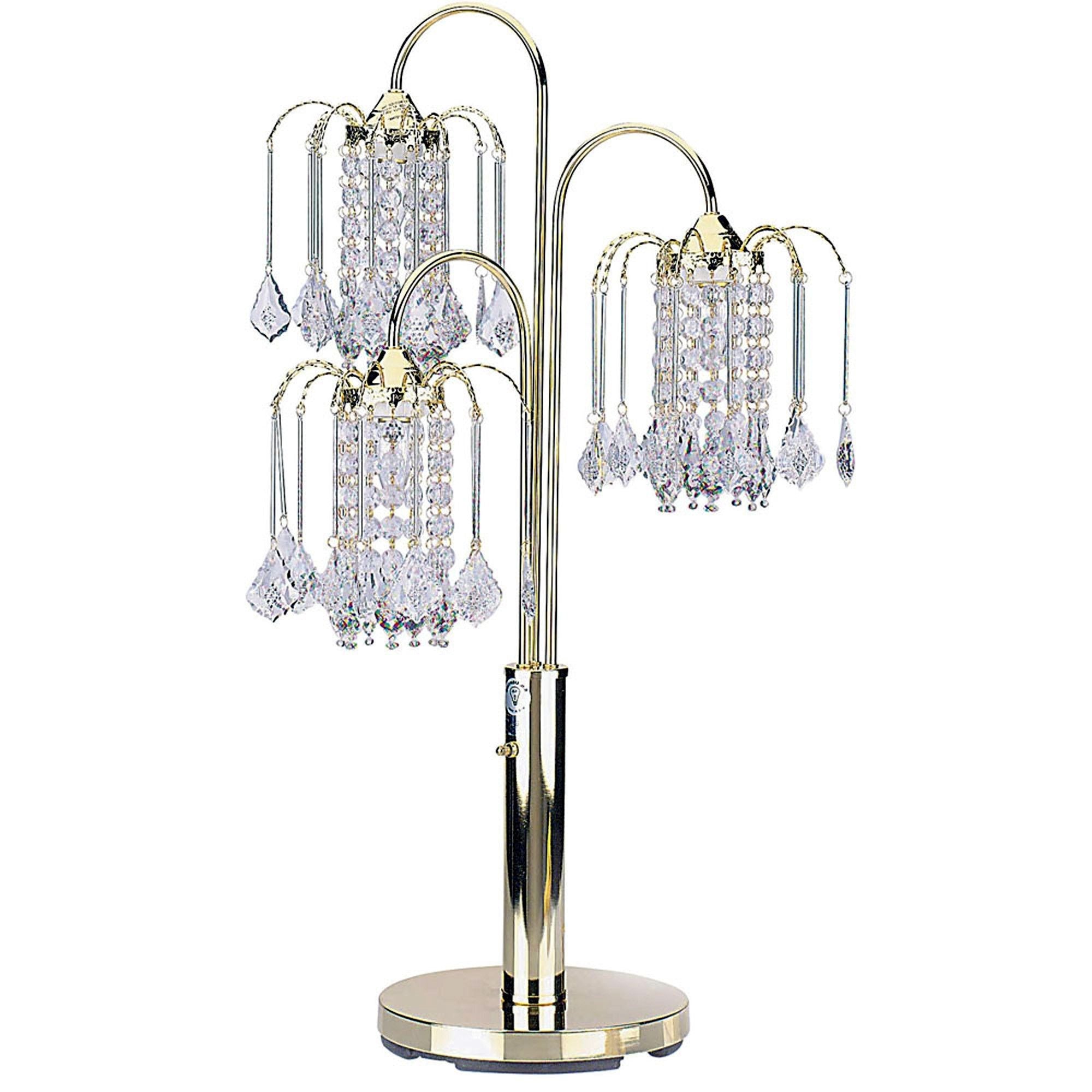 Faux Crystal Three Light Chandelier Table Lamp - Gold