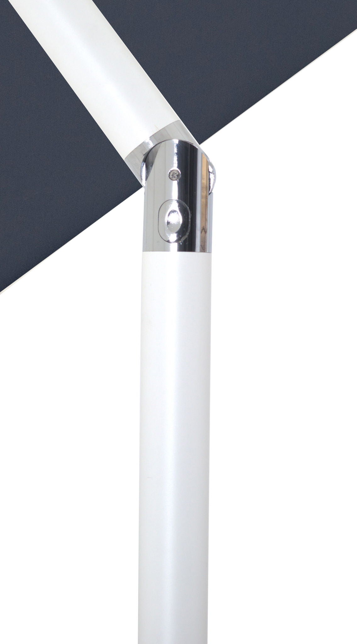 Bask in the shade wherever it's needed when you bring home this Fiji fabric and matte white aluminum patio umbrella. This ingenious umbrella can be used as a standalone umbrella on a deck or patio - or add it to your choice of table for a sturdy solution for hiding from the sun's rays. The aluminum pole weathers the elements like a champ, and the umbrella is crafted from water-resistant fabric for a beautiful, lasting look.
