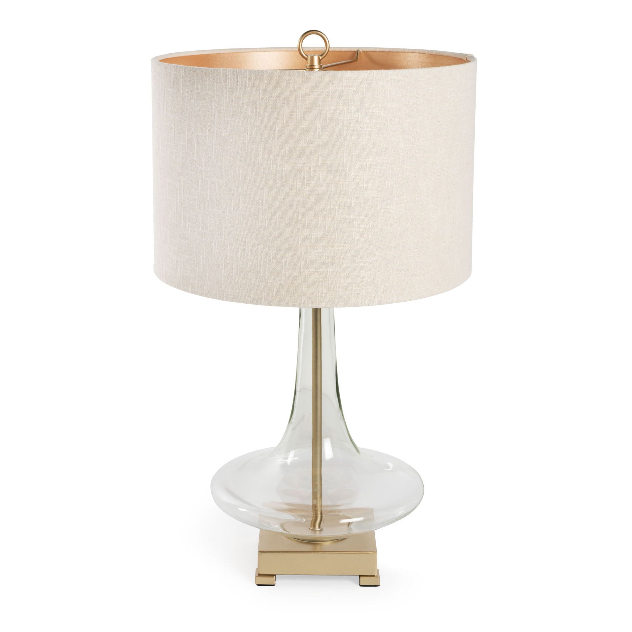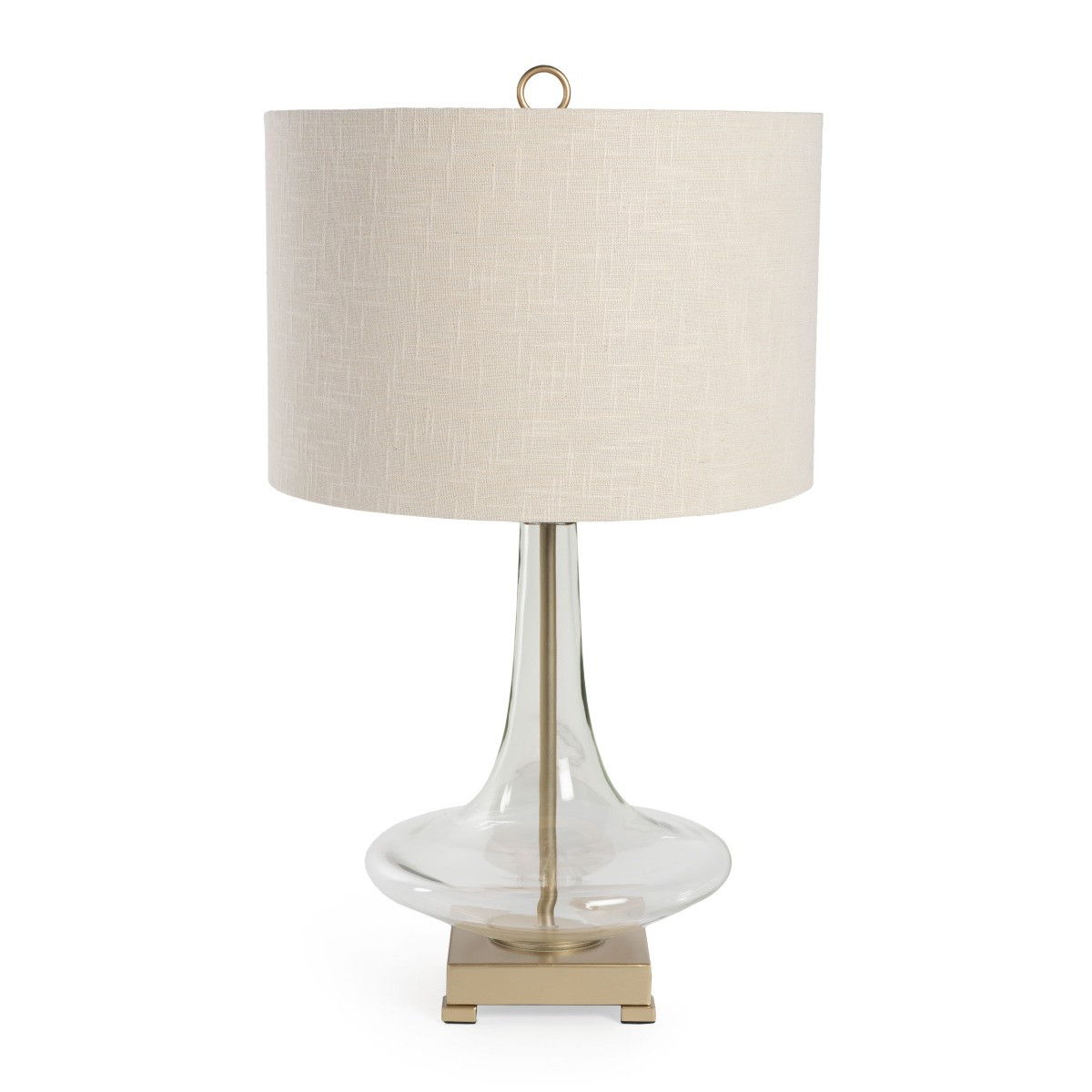 Glass LED Table Lamp With Drum Shade - Clear Beige