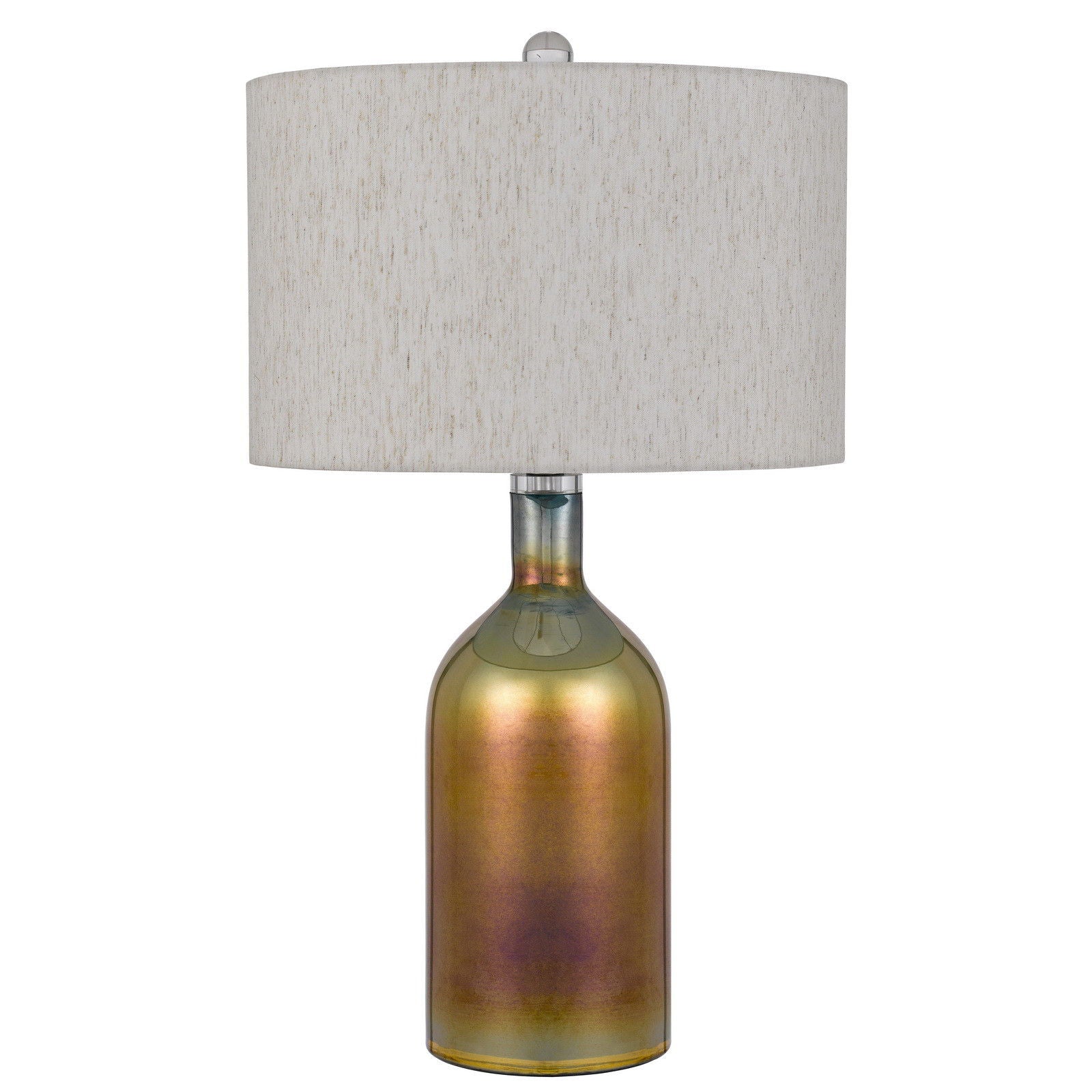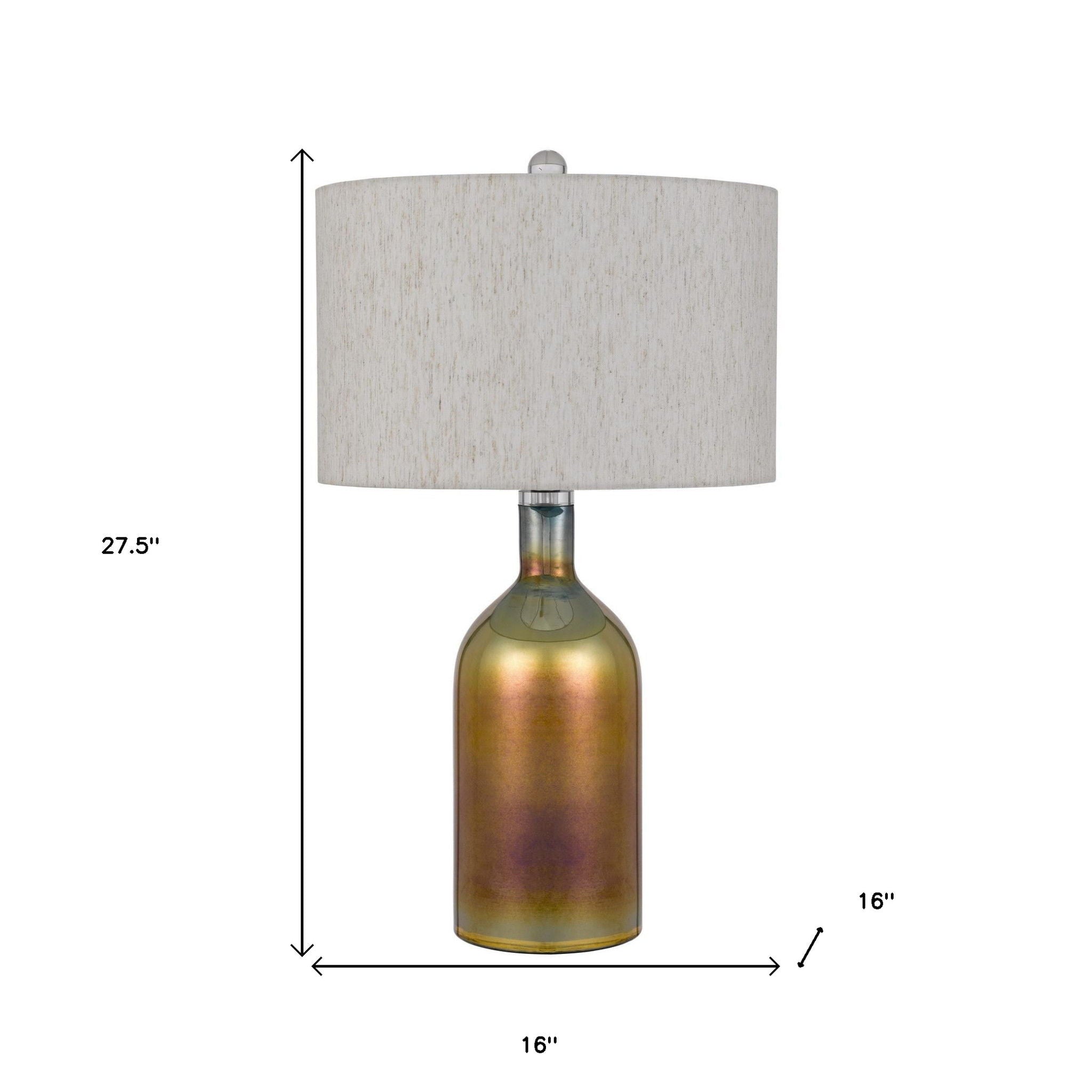 Glass Novelty Table Lamp With Gray Drum Shade - Gold