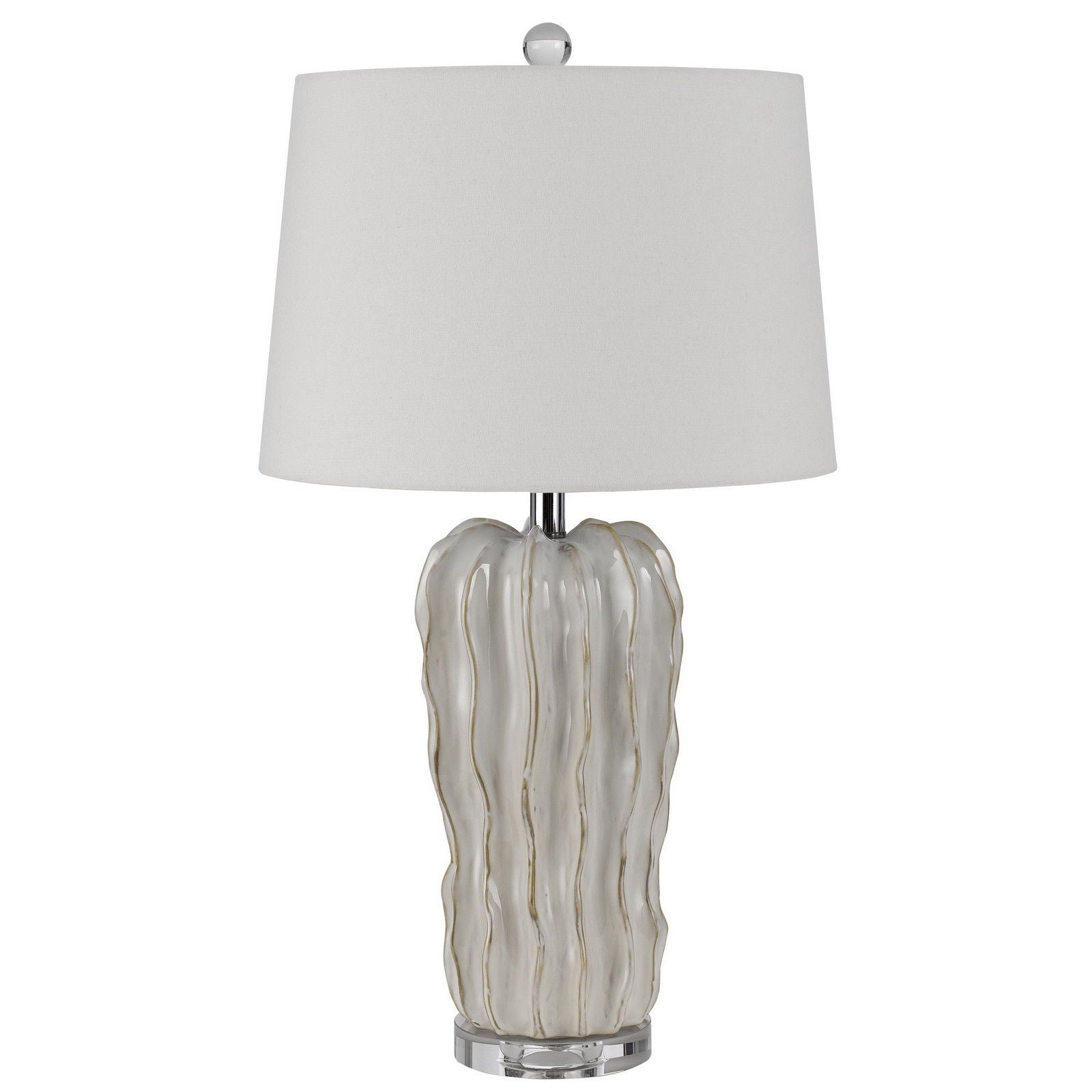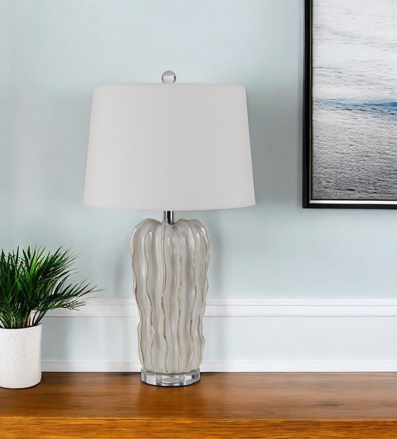 Glass Novelty Table Lamp With White Empire Shade - Nickel