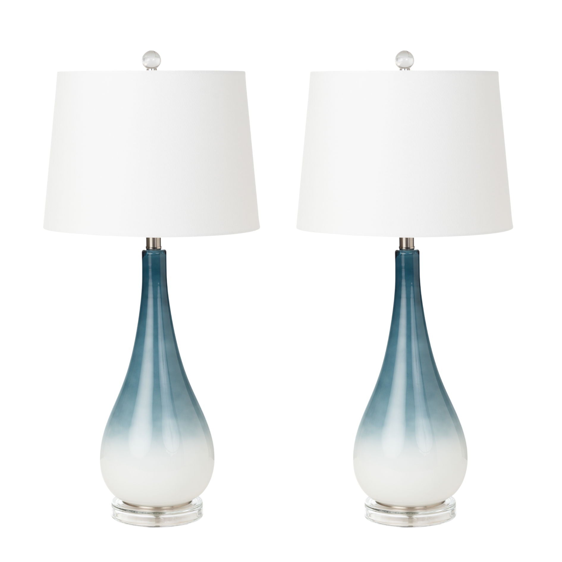 Glass Table Lamps With White Empire Shade (Set of 2) - Blue And White