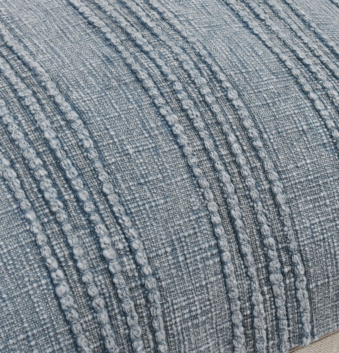 Dyed and stonewashed cotton creates a casual worn look making this pillow ideal for any cozy, relaxed setting. Traditional stripes atop a woven background add texture and an understated yet classic look to the pillow. A soft feather blend insert gives this pillow a lavish supportive feel that makes this pillow as comfortable as it is beautiful.