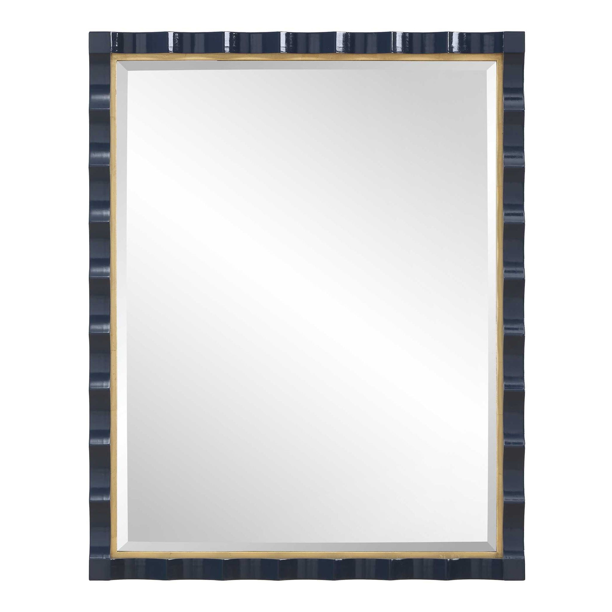 Elegantly Designed With A Scalloped Edge And A Stunning Gold Leaf Inner Liner, This Piece Is Beautifully Finished In A Rich, High-gloss Navy Lacquer. Perfect For Adding A Touch Of Luxury And Depth To Any Room, The Gulf Mirror Blends Classic Charm With A Modern Twist. A Generous 1" Bevel Is Added To This Piece, Which May Be Hung Horizontal Or Vertical.