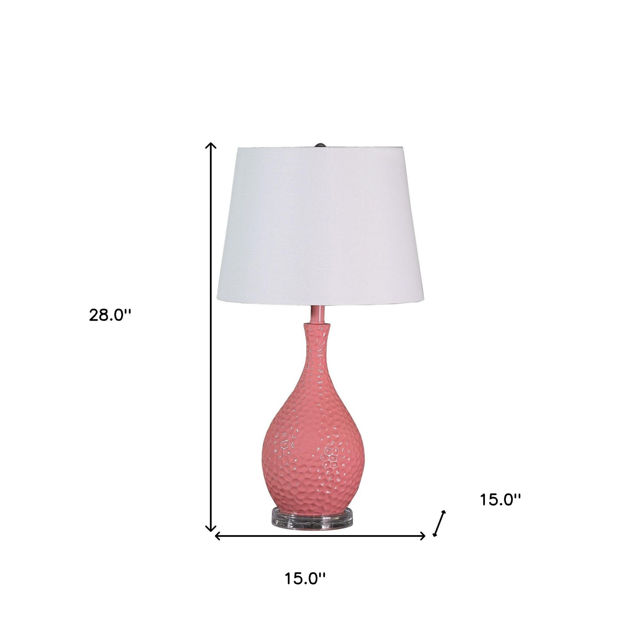Hammered Urn Table Lamp With White Tapered Drum Shade - Pink