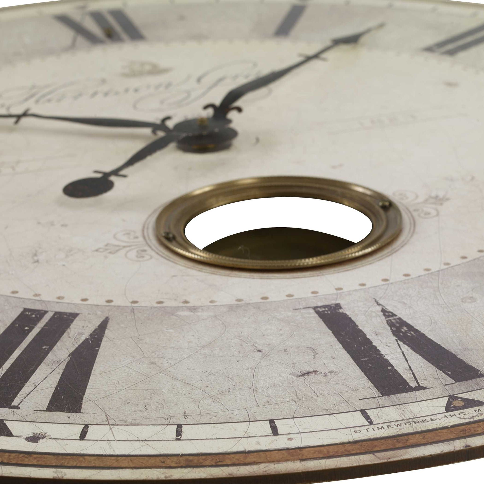 Weathered, Laminated Clock Face With Brass Center Components And Internal Pendulum. Quartz Movement Ensures Accurate Timekeeping. Requires One "AA" Battery.