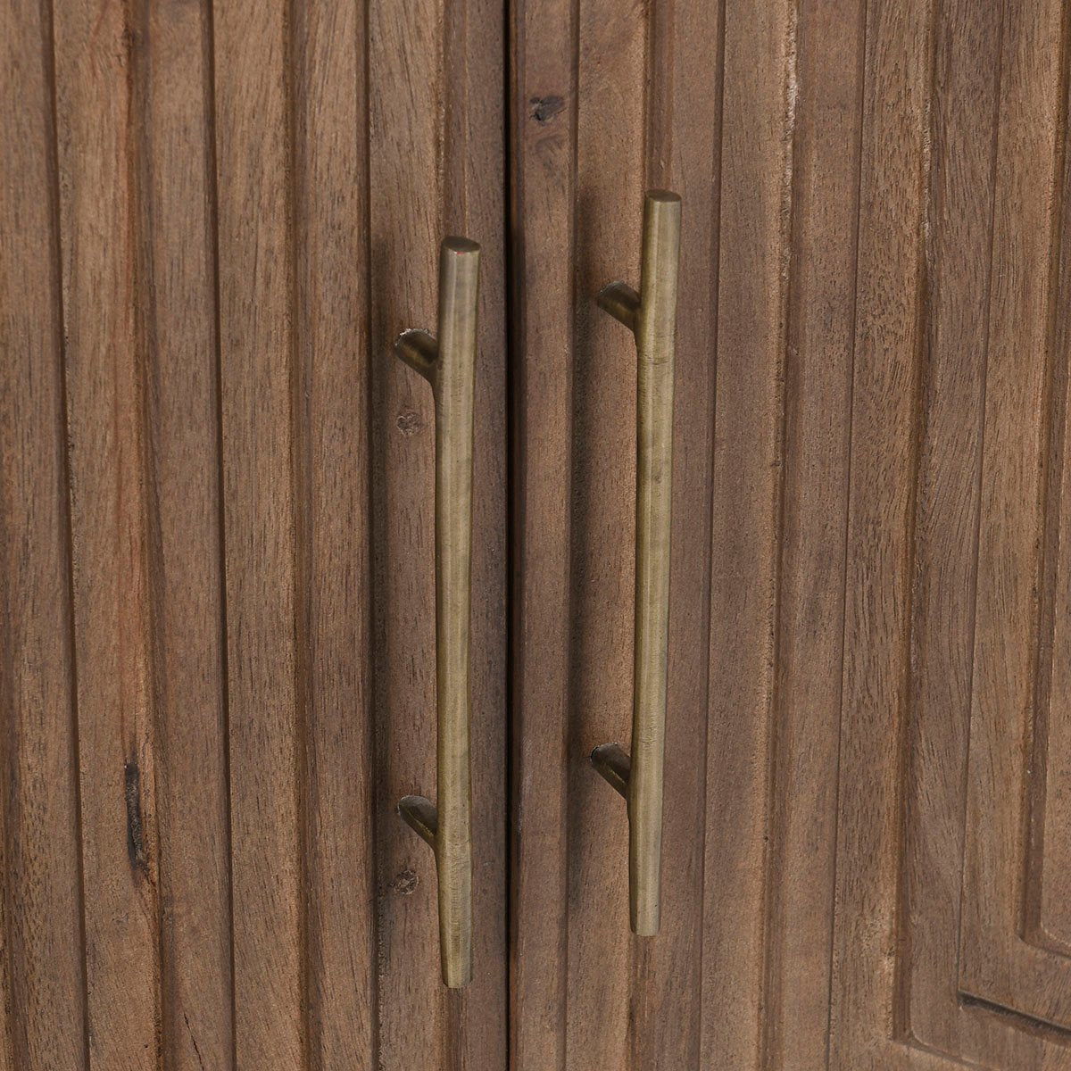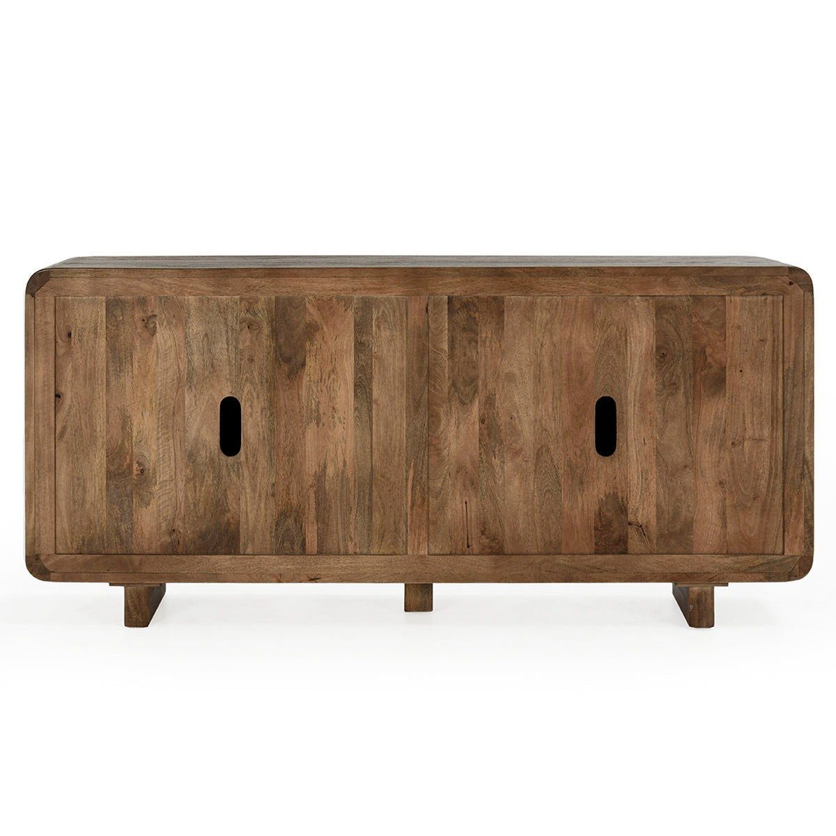 Reminiscent of art deco style, this sideboard boasts a handsome geometric pattern carved into each of its four doors. Adjustable shelves and cable holes offer ample space for serve ware, linens, entertainment consoles, or books and games.