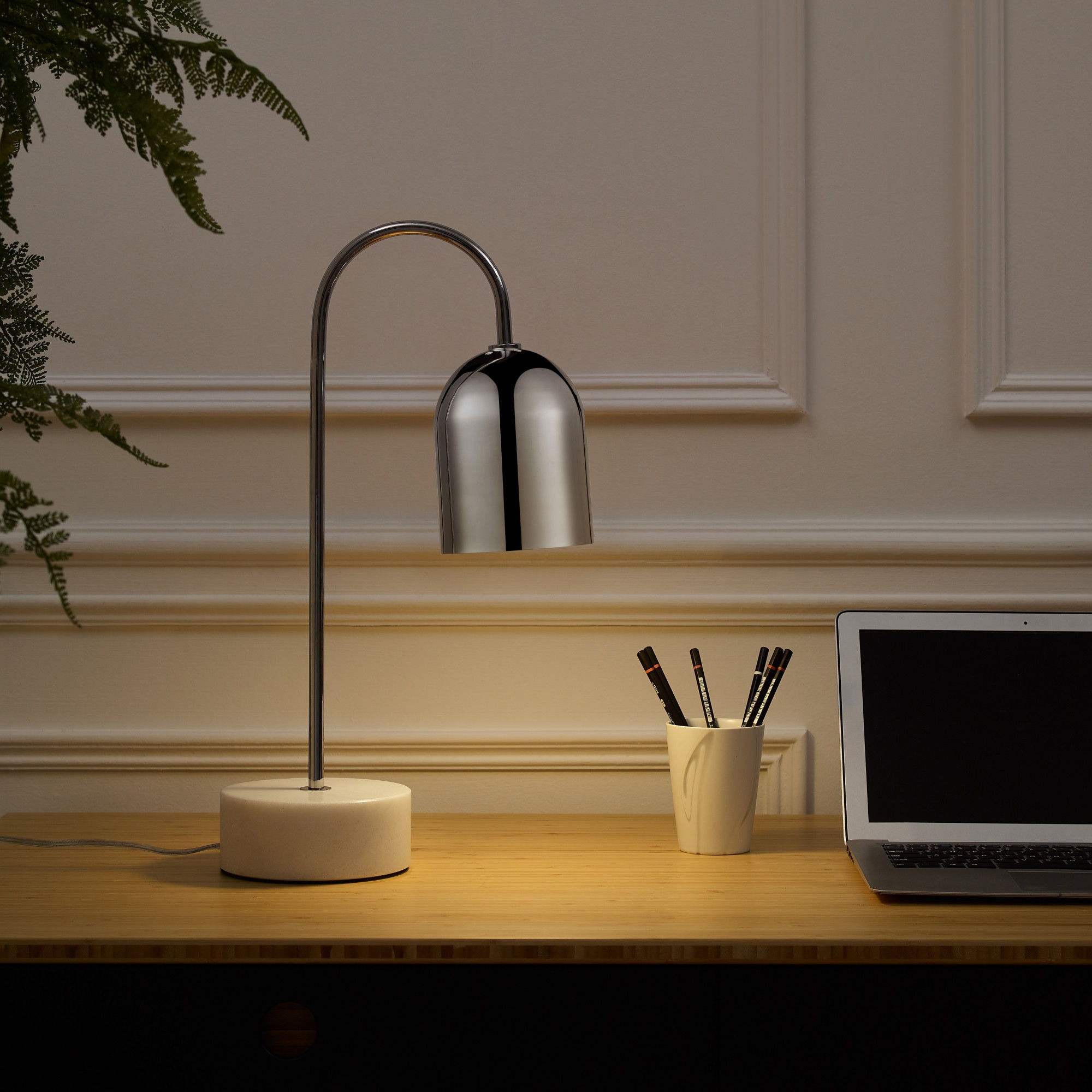 Iron Desk Table Lamp With Silver Metallic Bell Shade - Silver Metallic