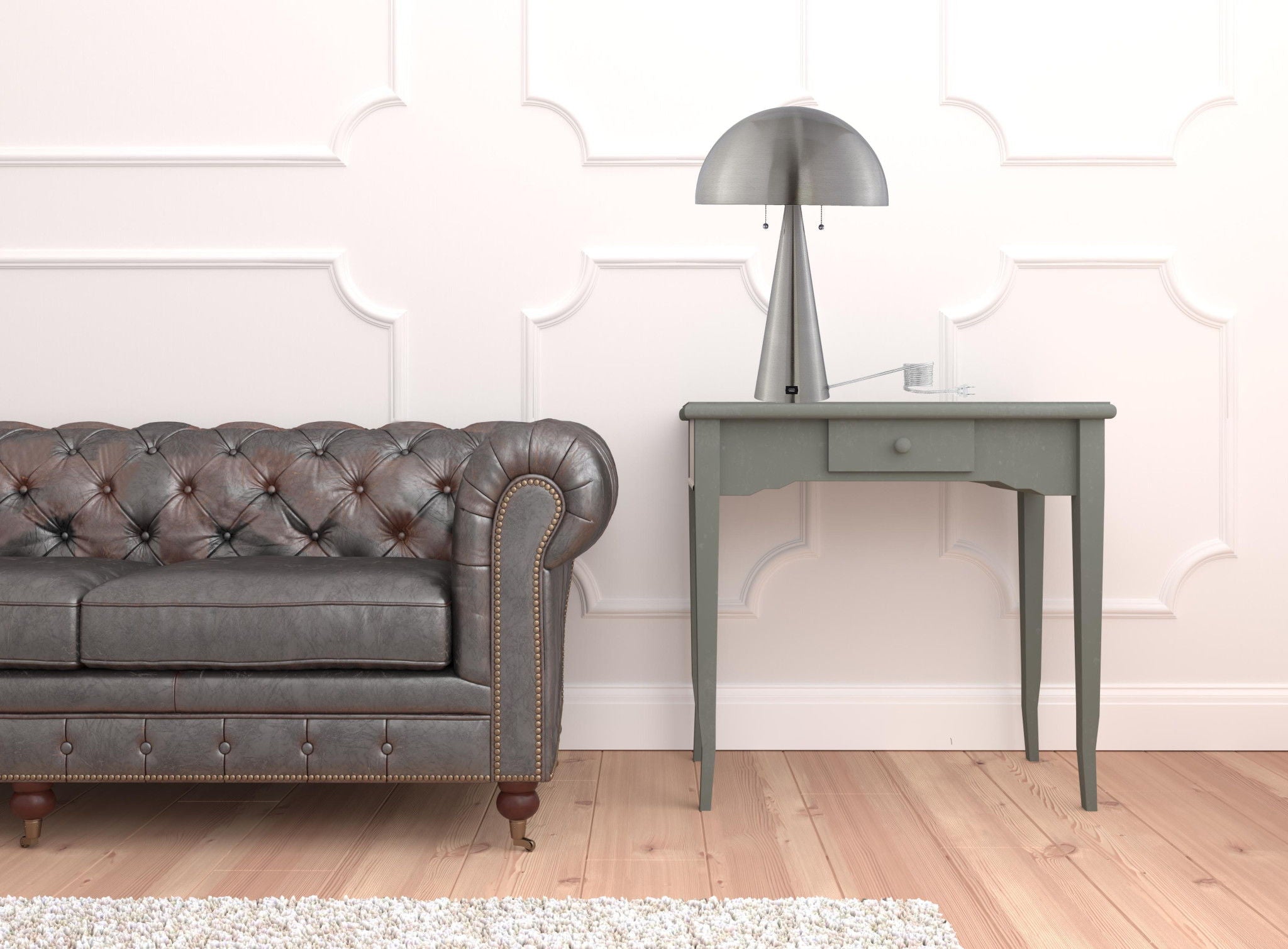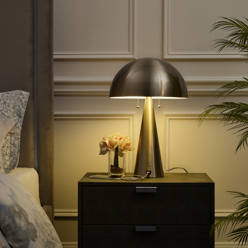 Iron USB Table Lamp With Gray Dome Shade - Gray