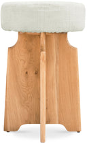 Draw all eyes to the counter area with the help of this Jasper counter stool. This handsome stool is oozing with country cabin charm and is well at home in rustic, primitive, traditional, and farmhouse decorative settings or anywhere you want to add a woodsy element. Made from solid white oak wood with a natural finish, this counter-height bar stool is topped with cream boucle fabric and a plump seat for comfort while you sit.
