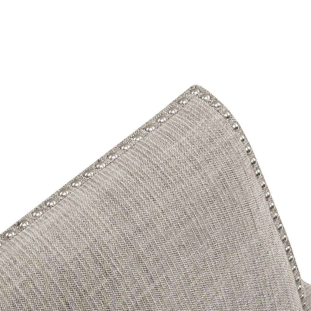 - Material:Solid wood and plywood frame,Solid wood legs,Upholstered seat Fabrication:70%Polyester, 30% Acrylic Filling: High Density Foam Wood/Metal Finish: Morocco Nailhead: Silver