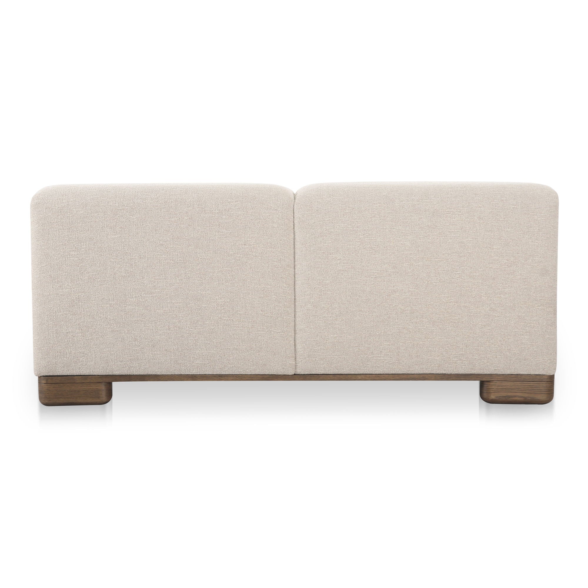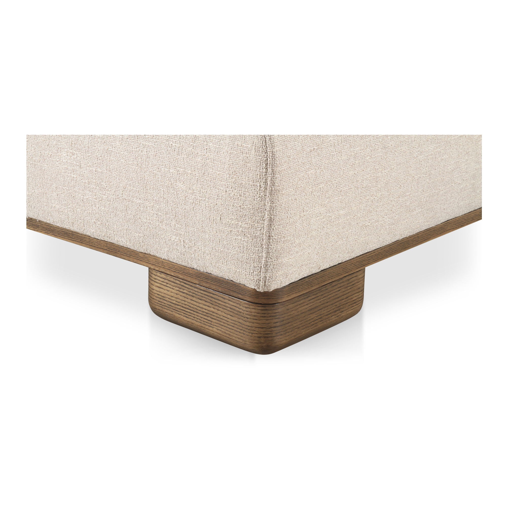 Designed with modular components that expertly function as standalone pieces or as part of modular configurations, the June collection is all about versatility. Wrapped in warm-toned, textured performance fabrics and elevated by oversized oak veneer legs, this piece combines everyday living and understated elegance. Built for ultimate relaxation — the plush feather and fiber fill, along with lumbar toss cushions, offer ultimate comfort.