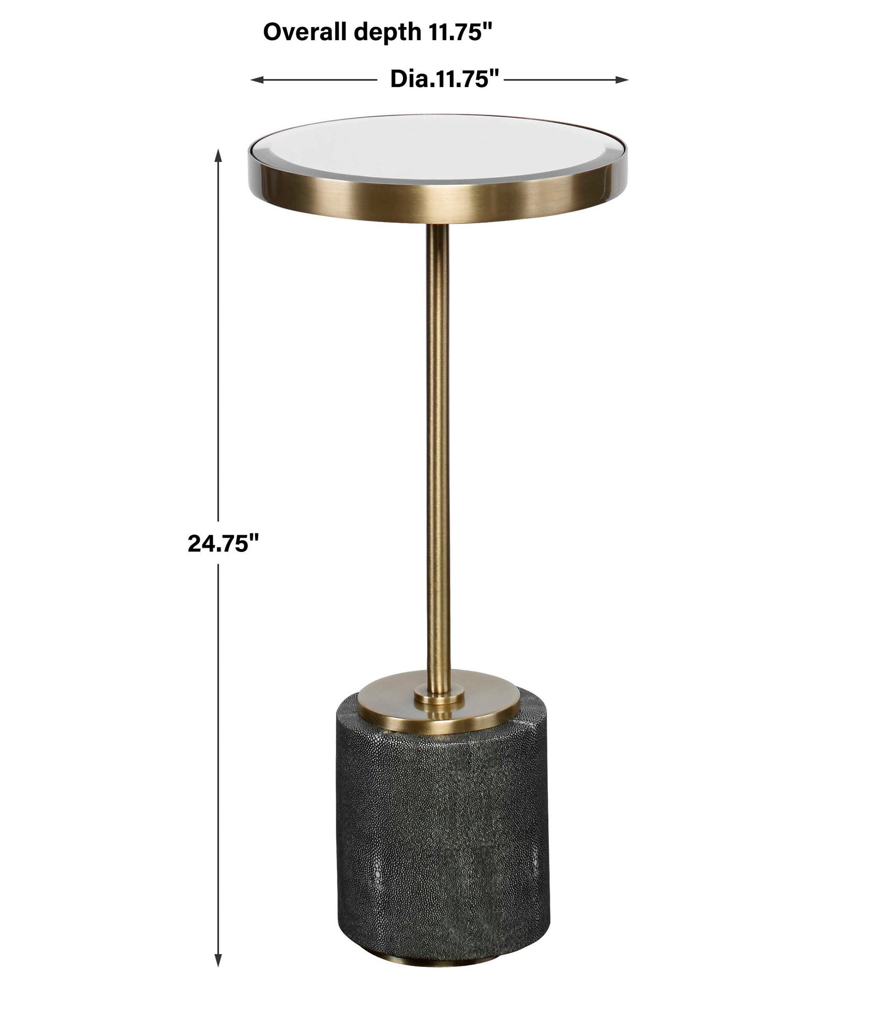 Stylish And Sophisticated, This Round Accent Table Features A Fresh Faux Shagreen Base Paired With An Iron Support In Rich Brass And A Beveled Top.