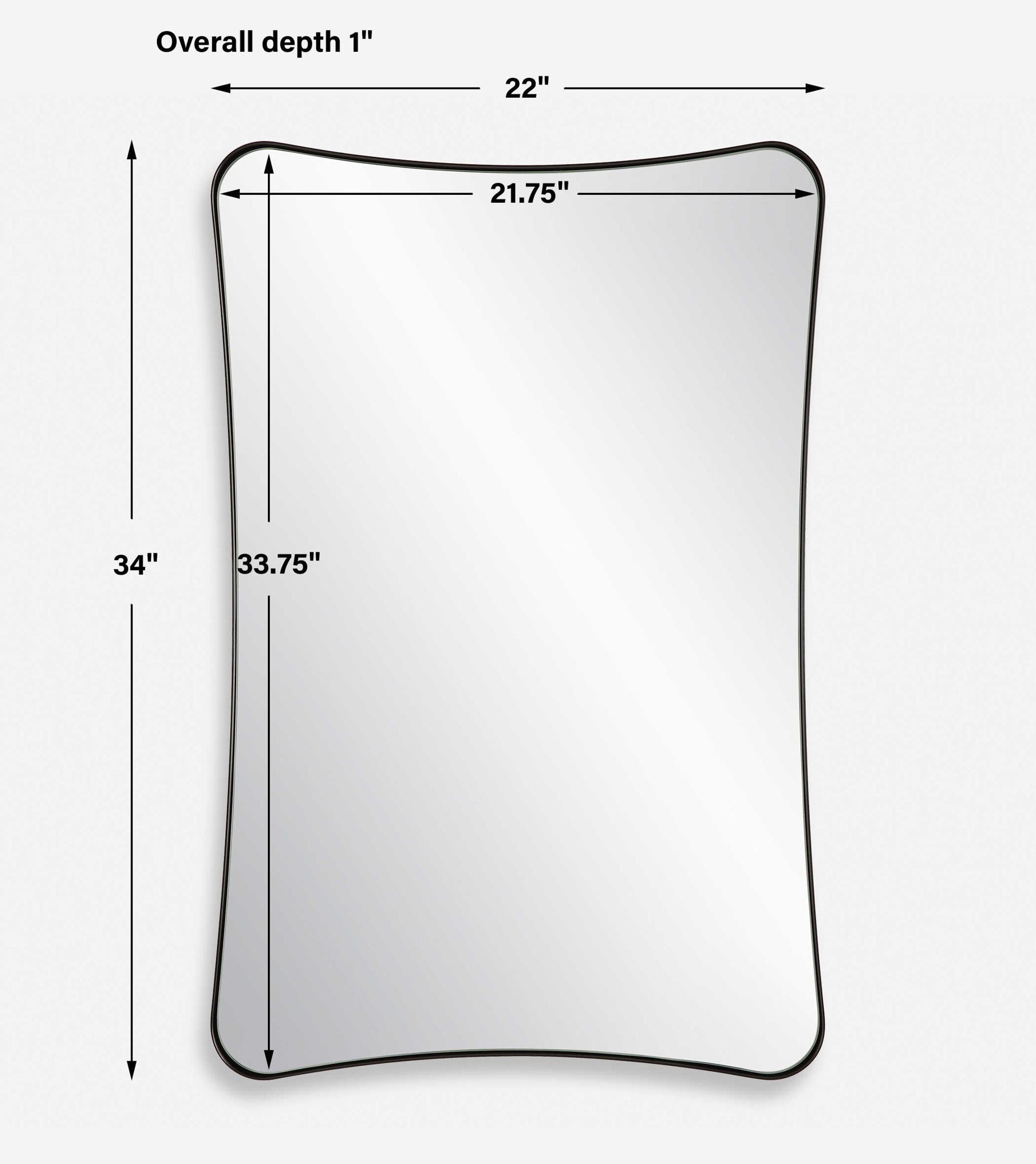 The Loudon Vanity Mirror Adds A Touch Of Femininity To This Otherwise Industrial Staple By Combining A Satin Black Finish To A Curvy Metal Frame Surrounding A Floating Polished Edge Mirror.
