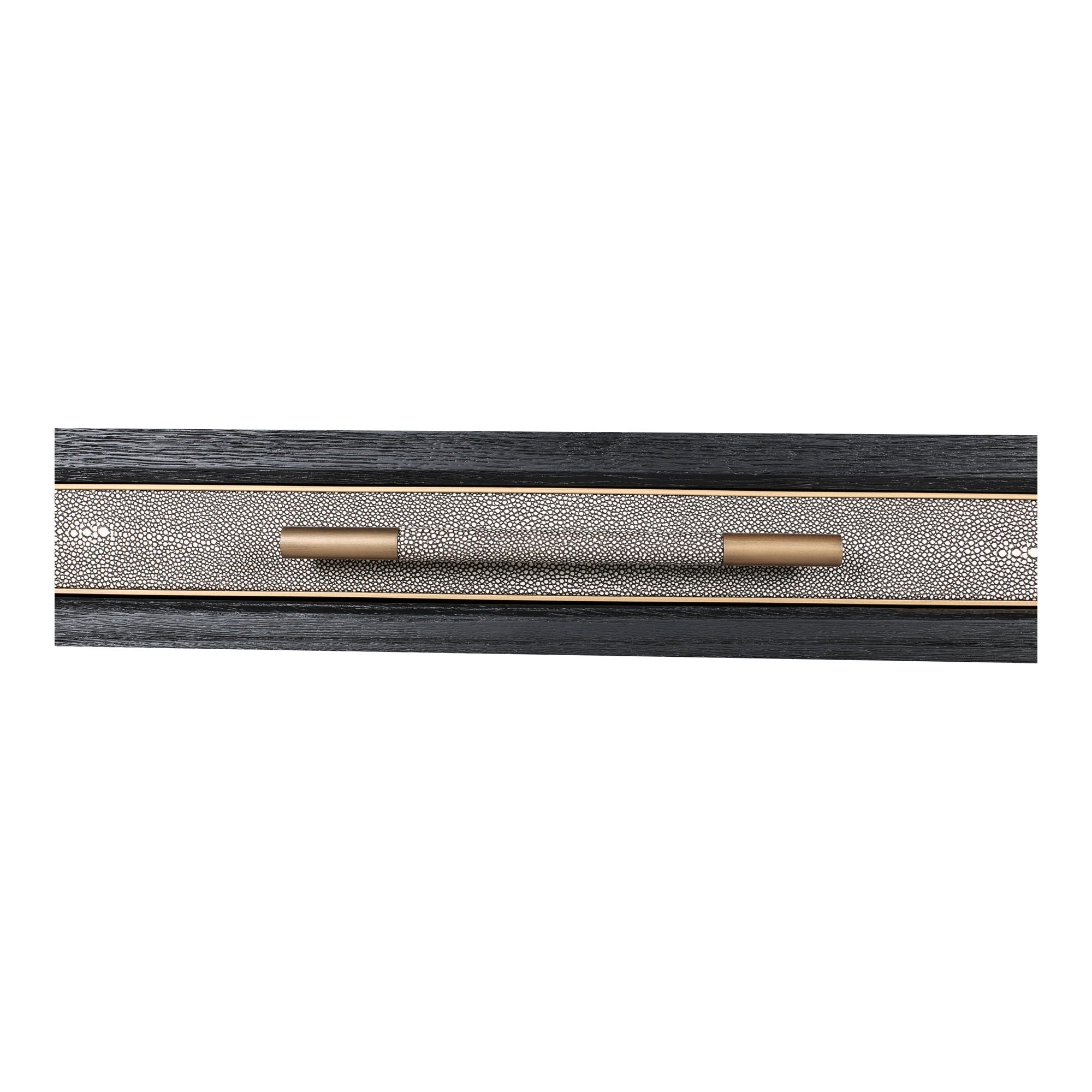 - A solid black oak frame & brass accents, with vegan shagreen leather