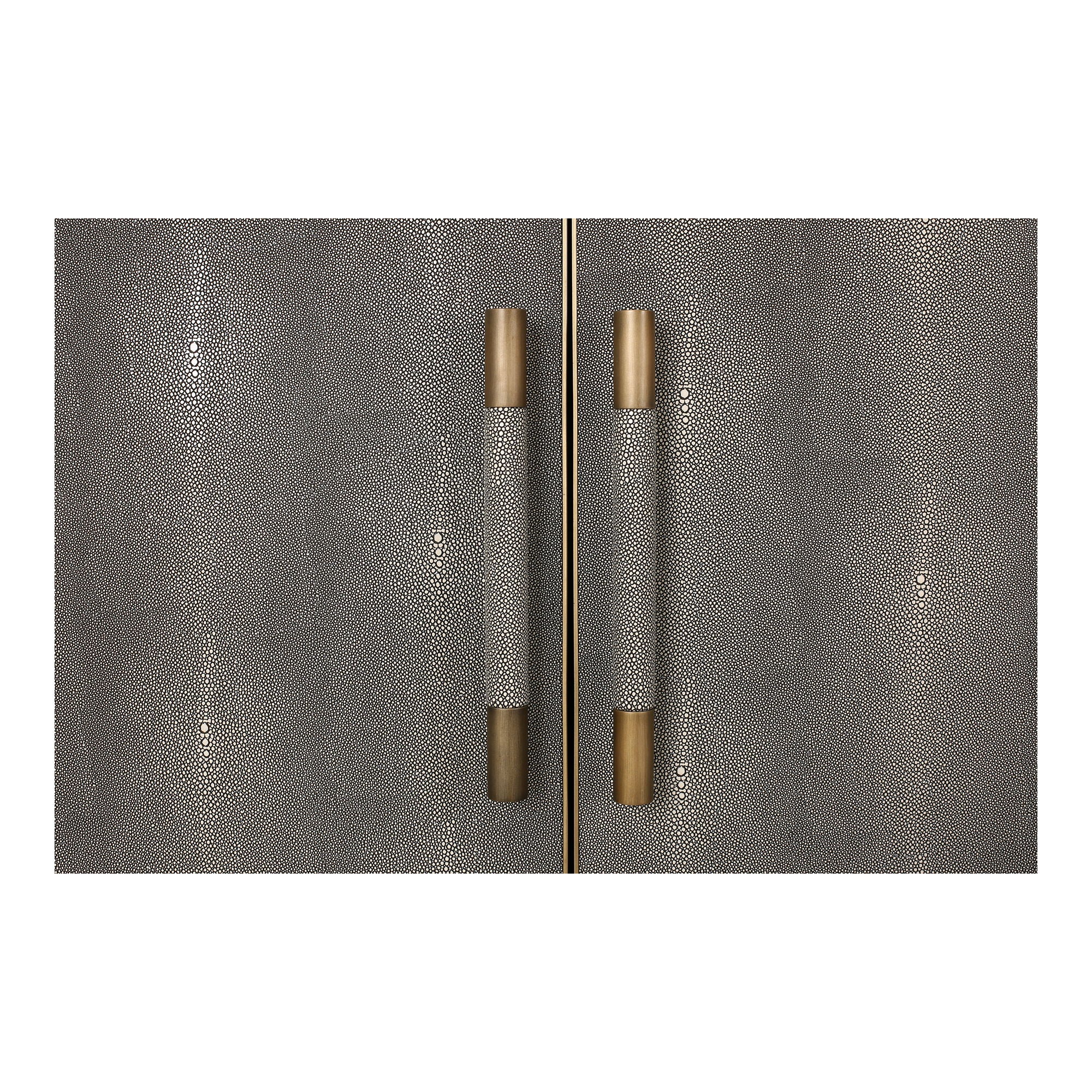 A contemporary homage to the timeless allure of Art Deco, the Mako sideboard infuses understated sophistication with rich visual texture and enduring style. This striking storage solution is artfully crafted with a grey oak frame, upholstered with luxurious vegan leather and adorned with antique gold-finished accents for a harmonious blend of subtlety and depth.