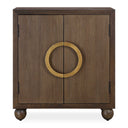 Simple And Sophisticated, Mayenne Beautifully Displays Rich Oak Wood Grain Quickly Elevating Any Room. This Two Door Cabinet Captivates With Its Circular Metal Handle In An Antiqued Gold Leaf Finish All Tied Together By Its Unique Ball Feet.