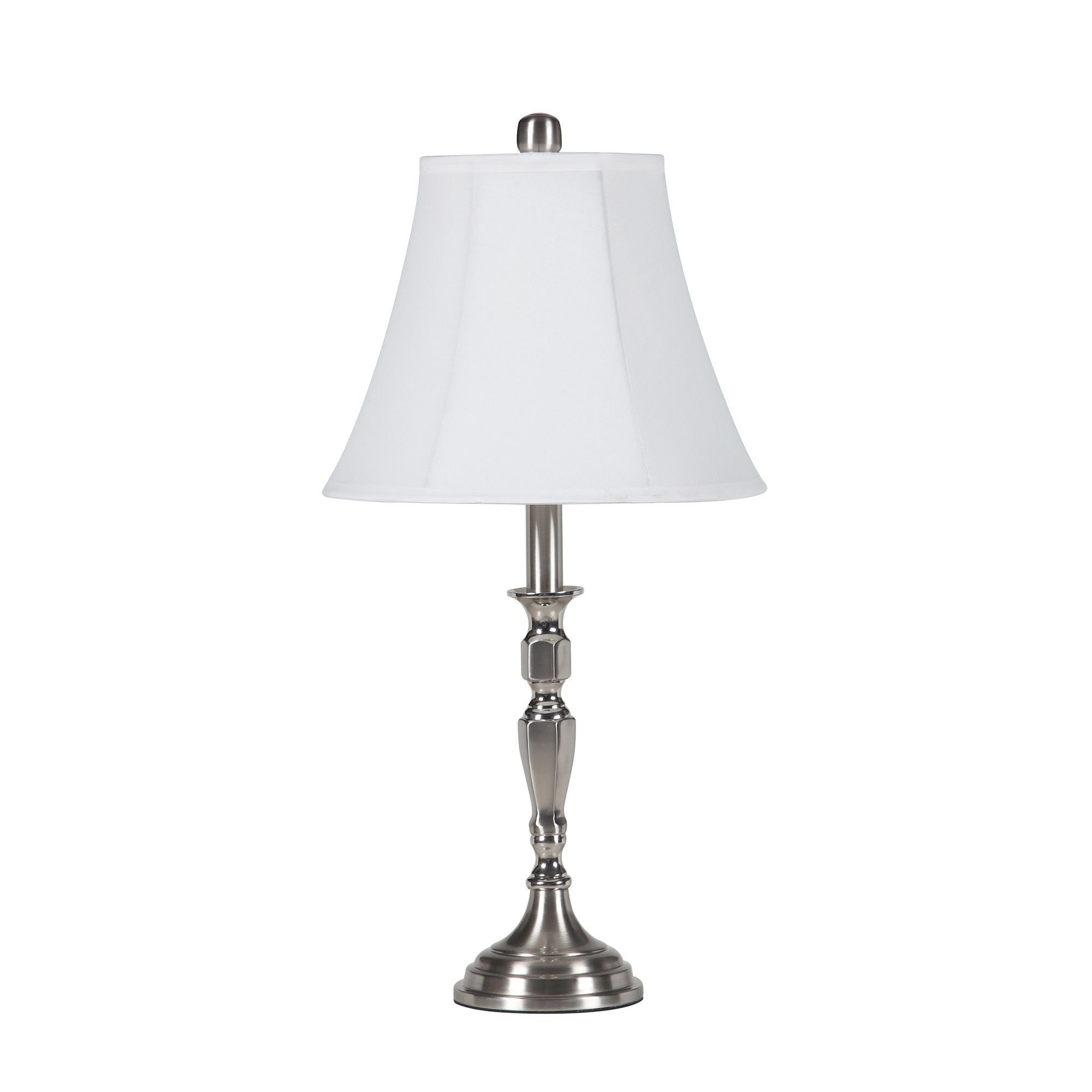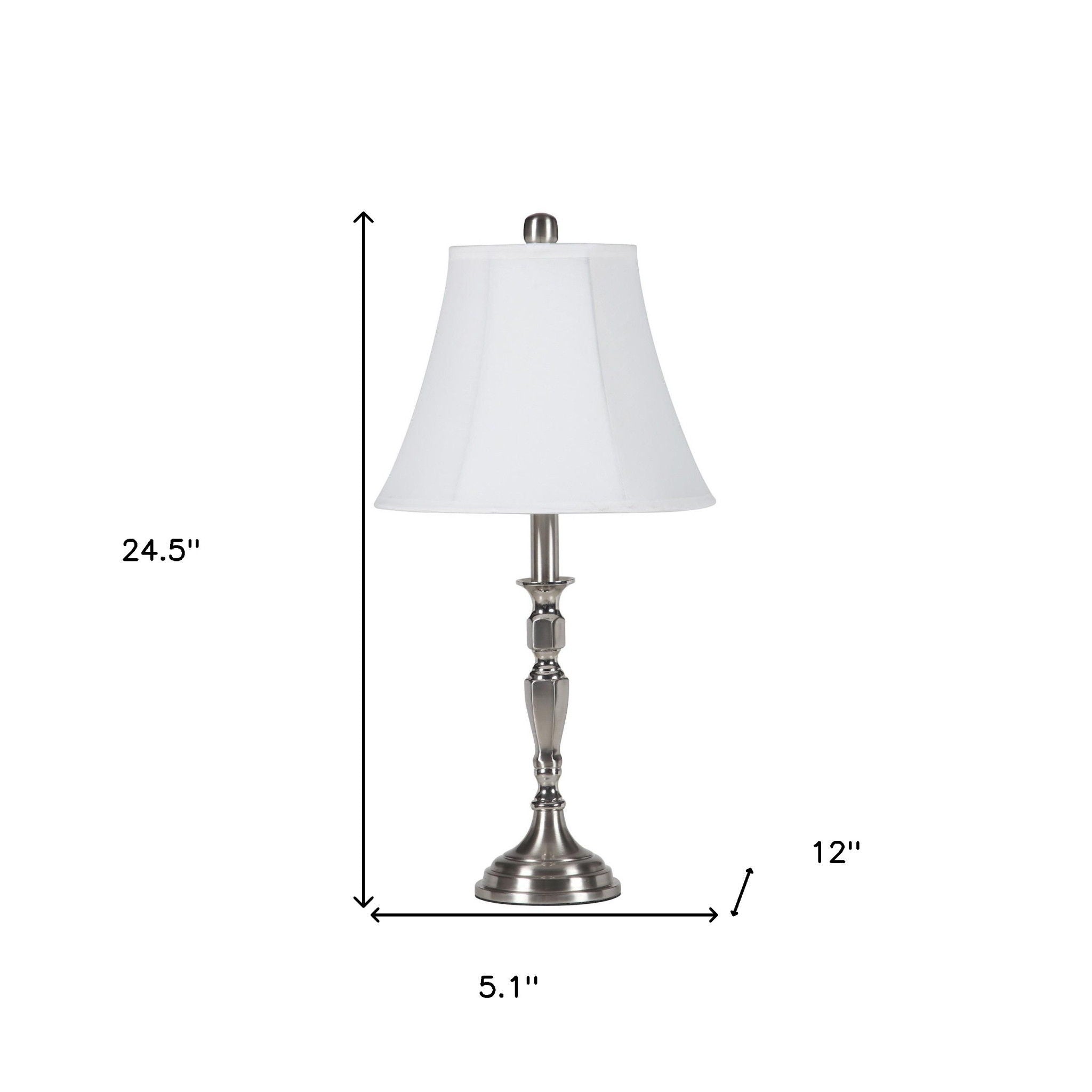 Metal Bedside Table Lamp With White Bell Shade - Nickel