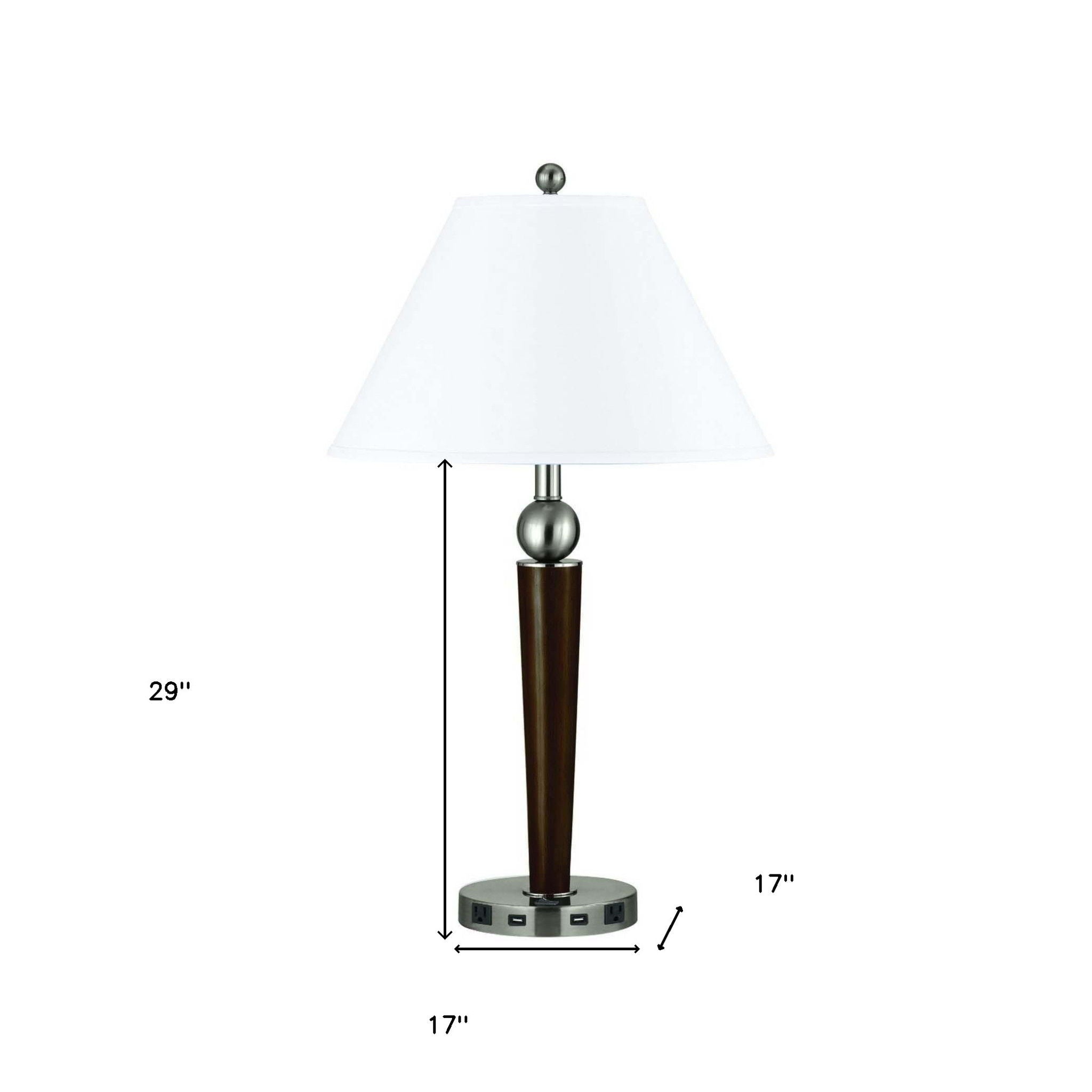 Metal Geometric USB Table Lamp With White Empire Shade - Nickel