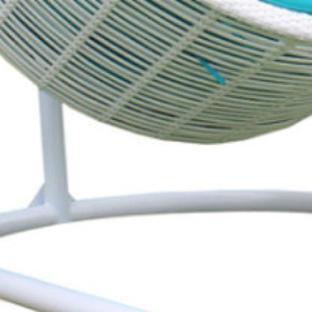 Metal Indoor Outdoor Swing Chair With Aqua Cushion - White