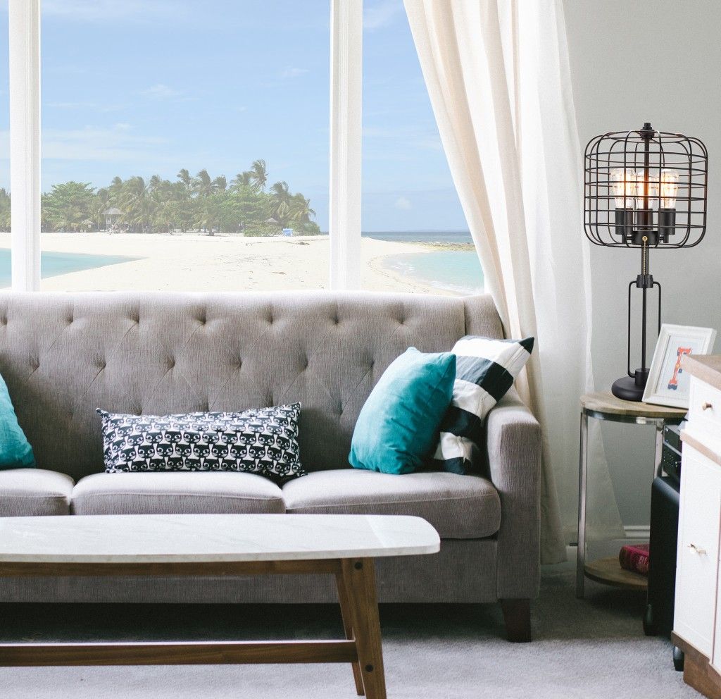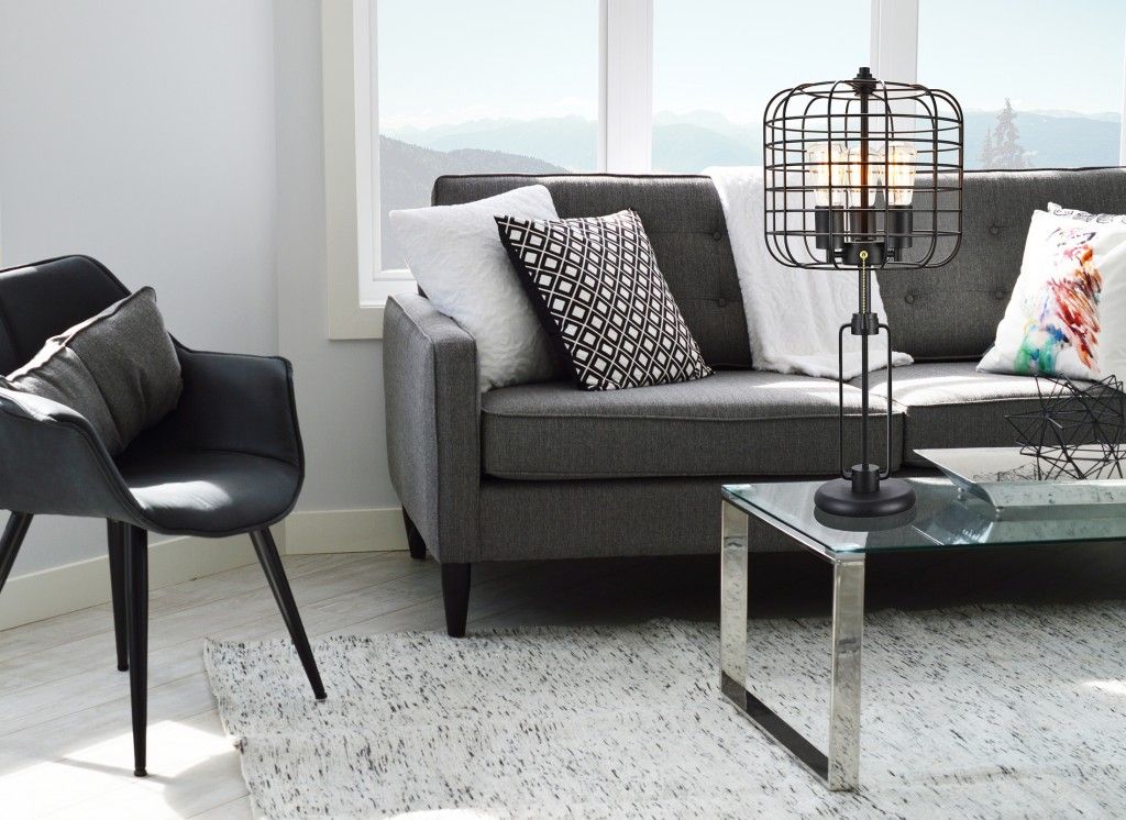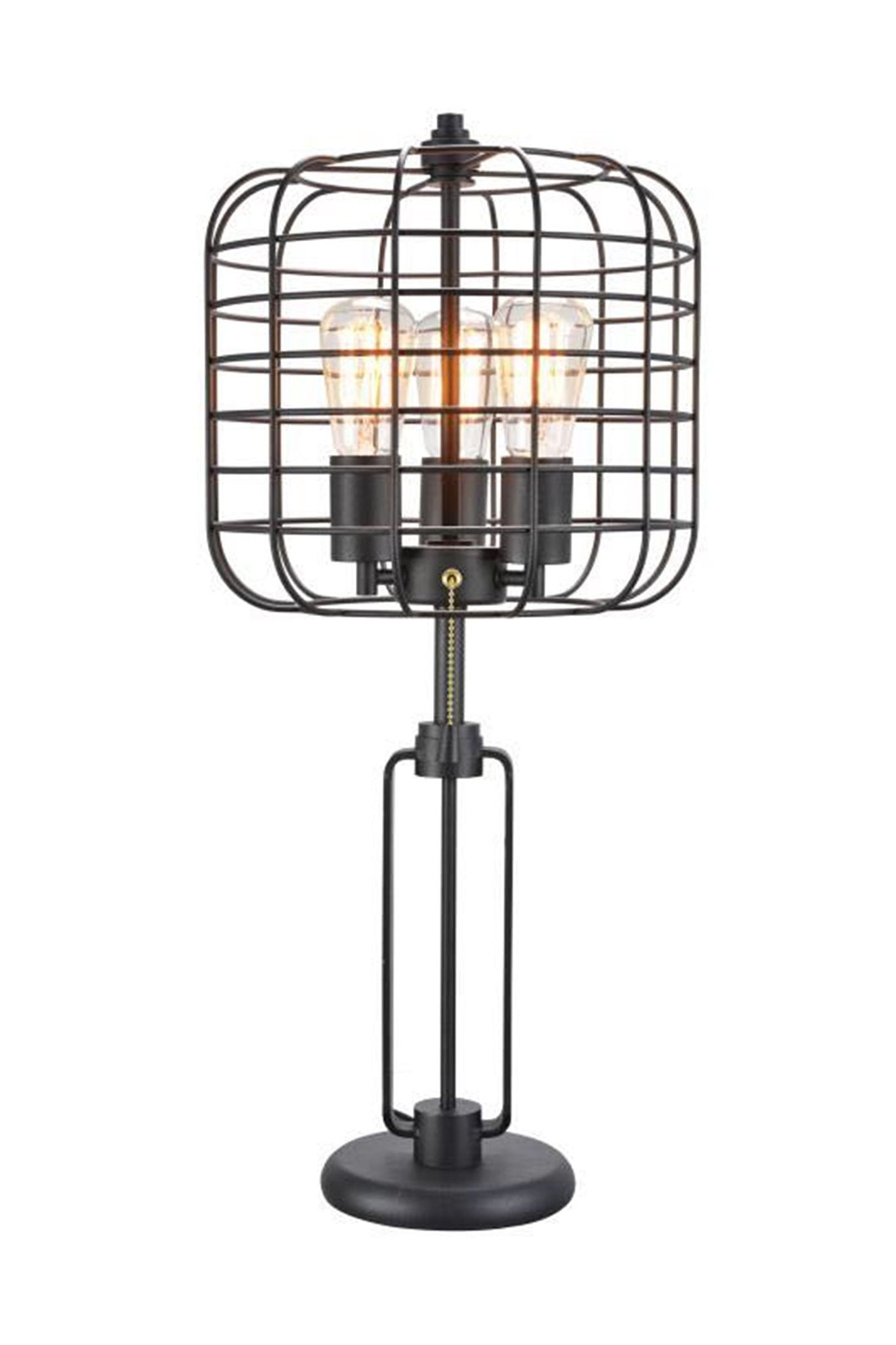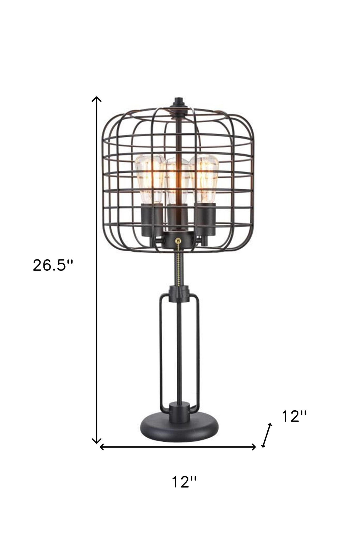 Metal Industrial Cage Design Three Light Table Lamp - Black