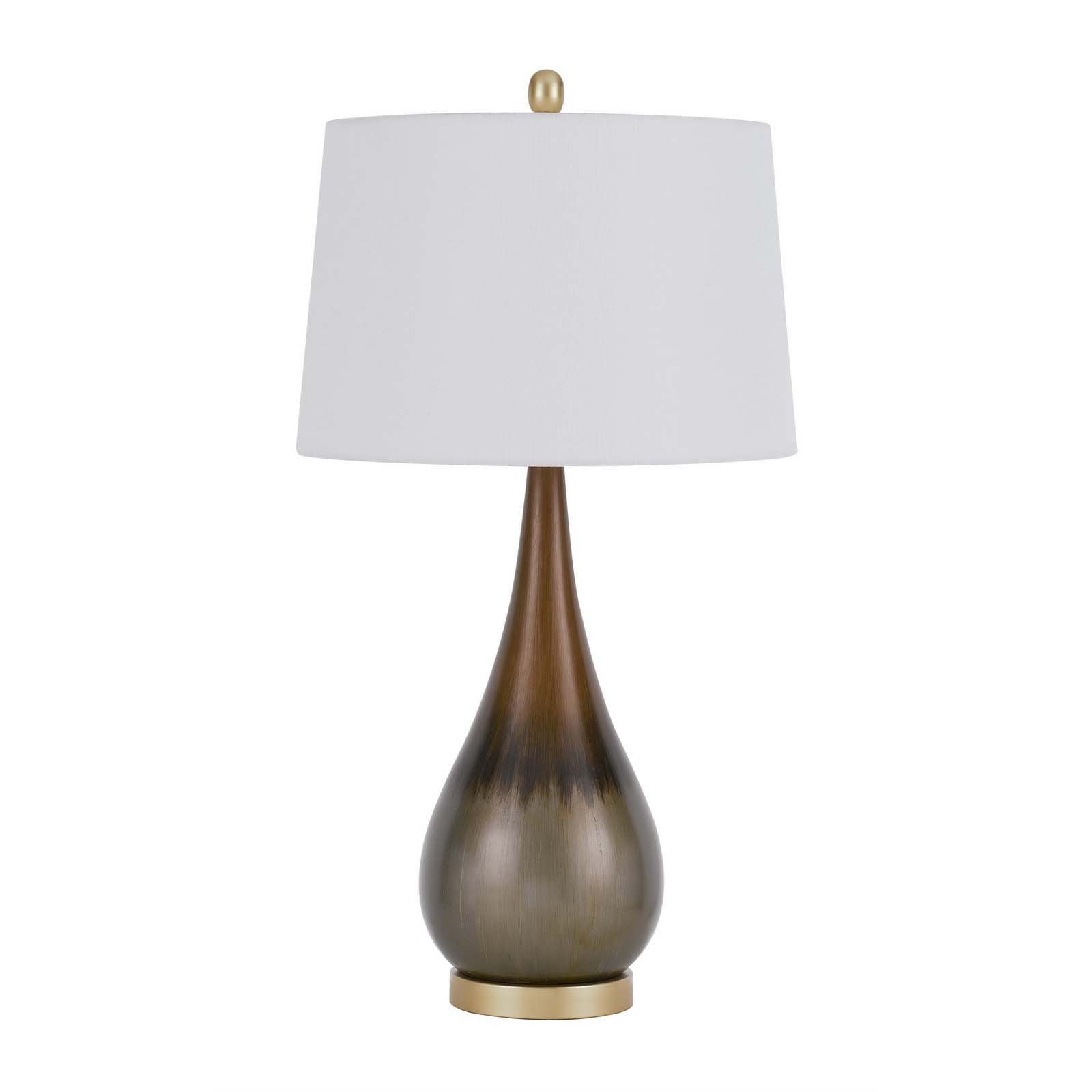 Metal Round Table Lamp With White Empire Shade - Bronze