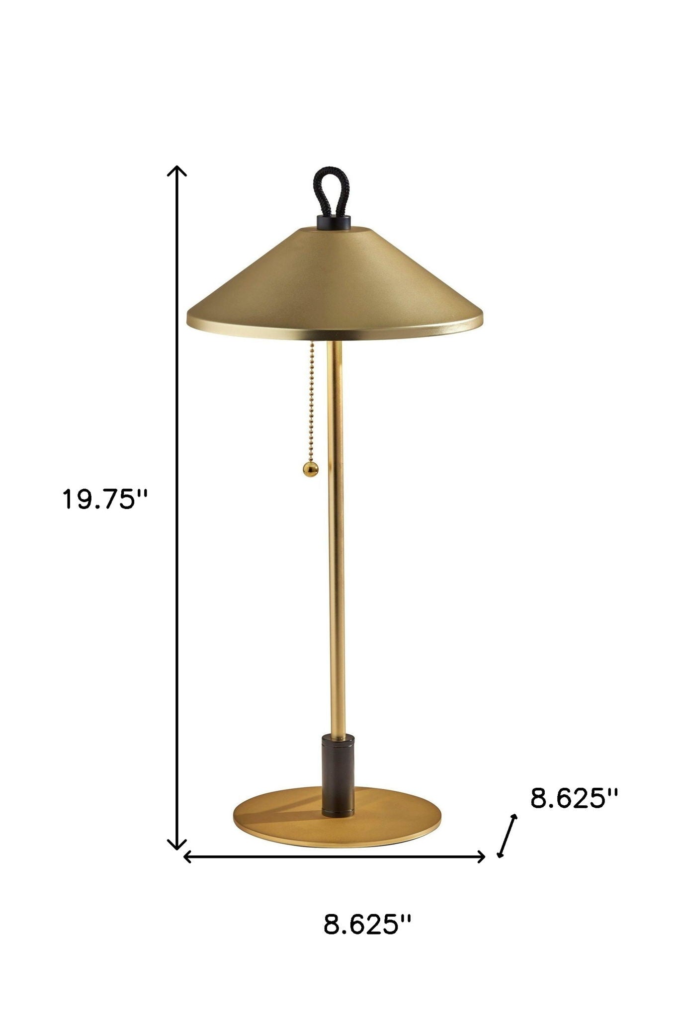 This 20-inch black and gold metal two light candlestick led table lamp with brass cone shade is the perfect combination of design and function. The lamp is made of sturdy metal and features a black and gold color. The brass cone metal shade is a great compliment to this lamp. This standard table lamp is designed to provide general lighting to the area. Use this lamp anywhere and elevate the look of the whole space. Bring some lite and good vibes into your space with this updated and stylishly designed lamp. 19.75-inch H x 8.625-inch W x 8.625-inch D