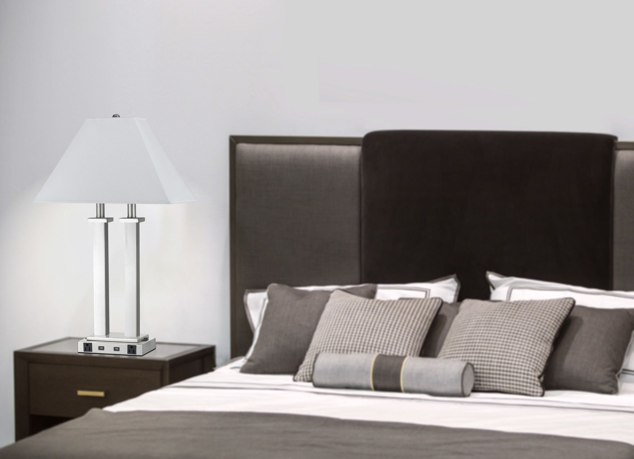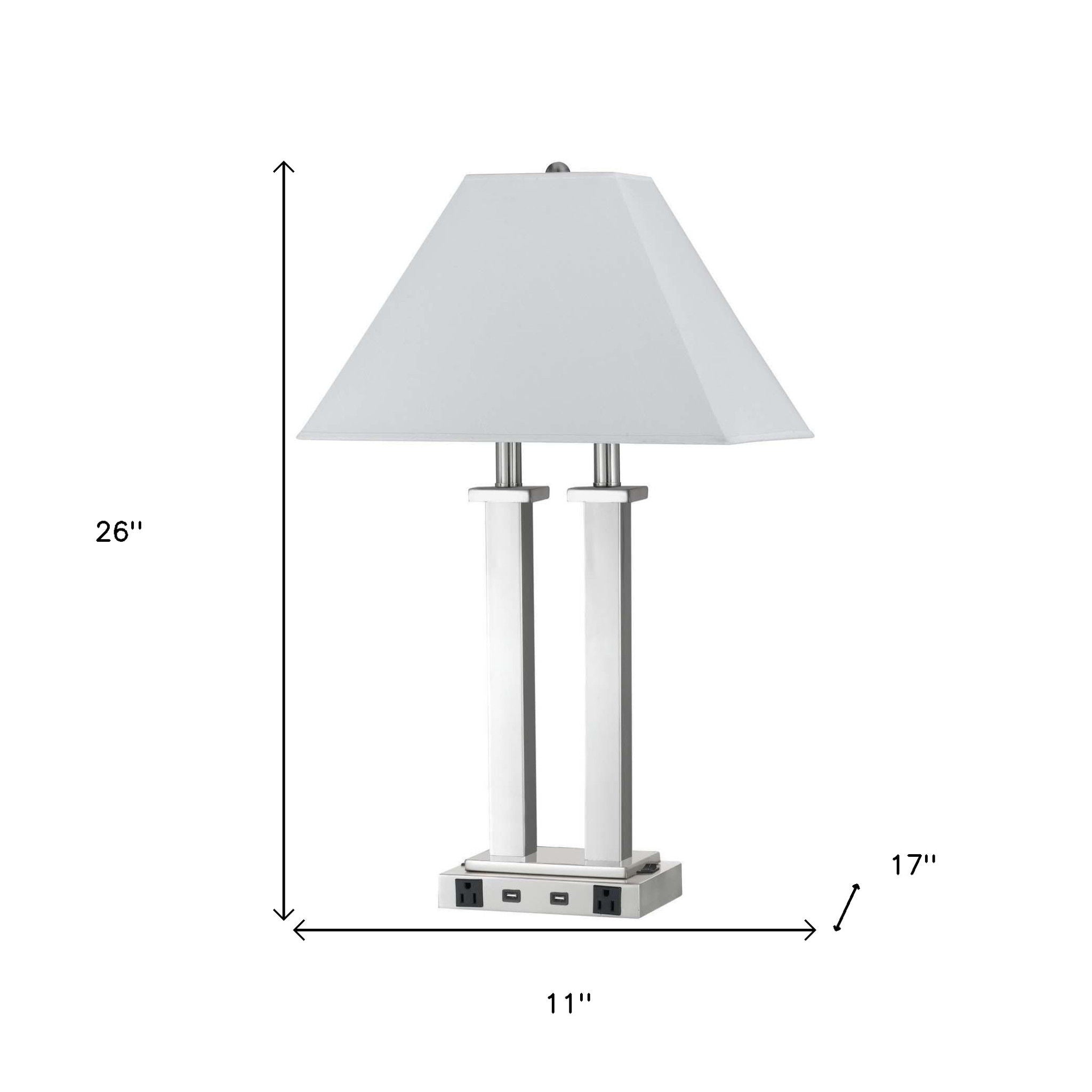 Metal Two Light Desk USB Table Lamp With White Novelty Shade - Nickel