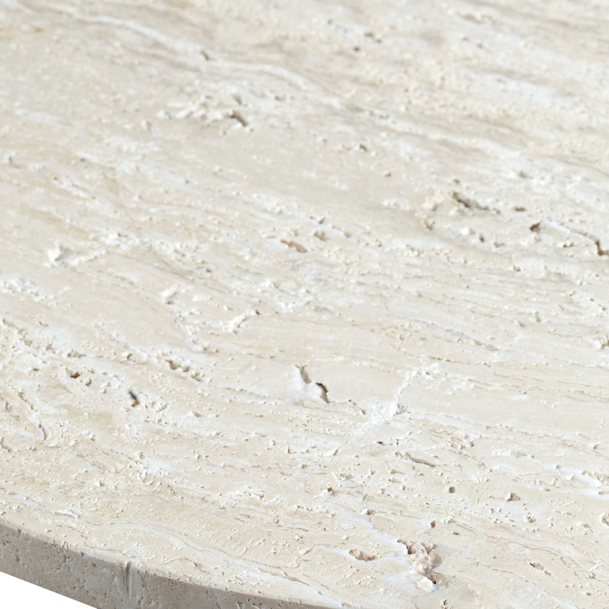 Built From Cast Aluminum In An Antique Brass Finish And A Complimentary Travertine Top. No Matter Where This Table Is Placed It Effortlessly Elevates Any Room With Its Understated Elegance And Natural Beauty. Due To The Nature Of Stone, Each Piece Will Have An Unique Coloration And Veining Pattern. Suitable For Both Indoor And Outdoor Use.