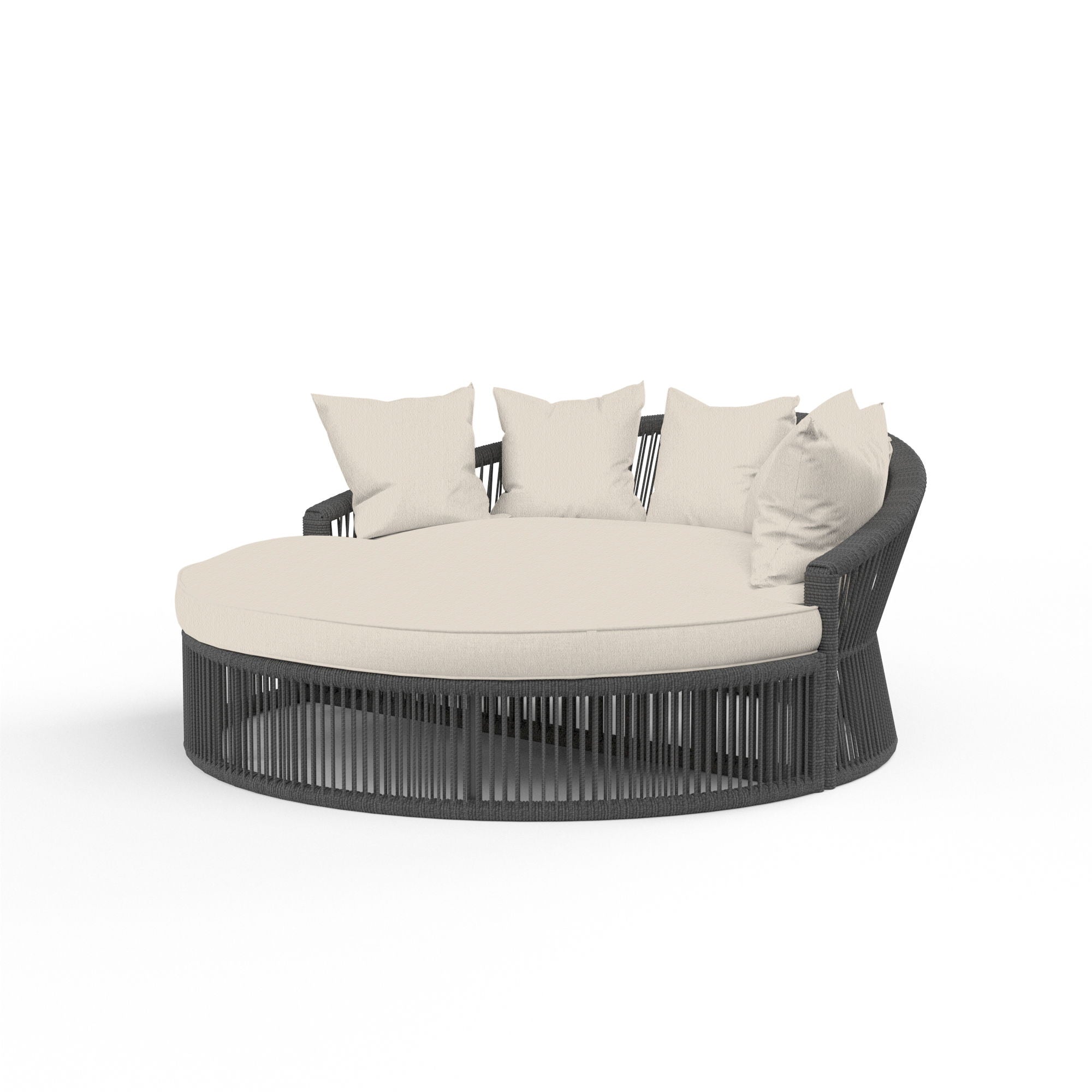 The Milano Daybed embodies clean lines and thoughtful angles with its curved frame and striated rope design. Its rust free aluminum frame is expertly hand wrapped with premium all-weather olefin rope in a silver-grey, with plush 6" cushions for ultimate relaxation.