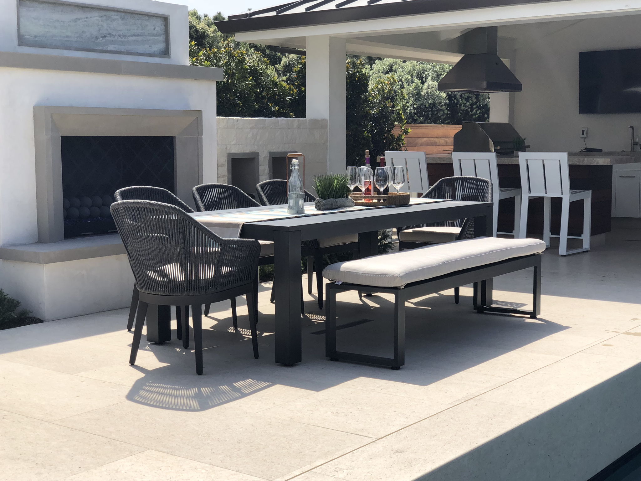 Crafted in the highest quality comfort and durability, the Milano Dining Chair will stand the test of time with minimal maintenance. Its curved powder coated aluminum frame is expertly wrapped with premium all-weather olefin rope in a charcoal-grey finish, and is finished with a slate tapered leg.