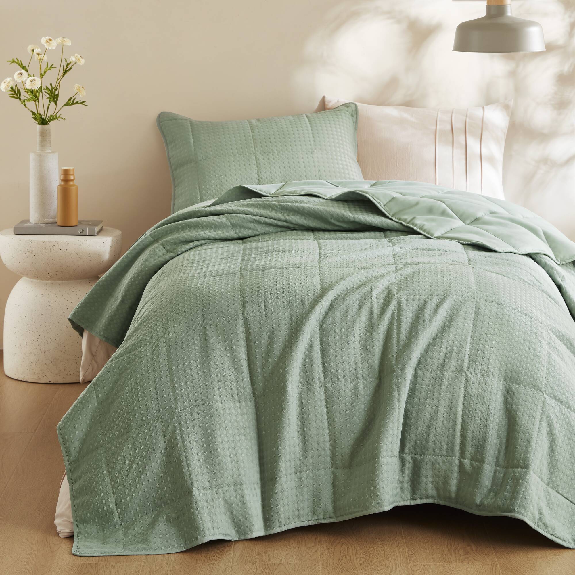 Mina - Twin/Twin Long Waffle Weave Textured Quilt Set - Green