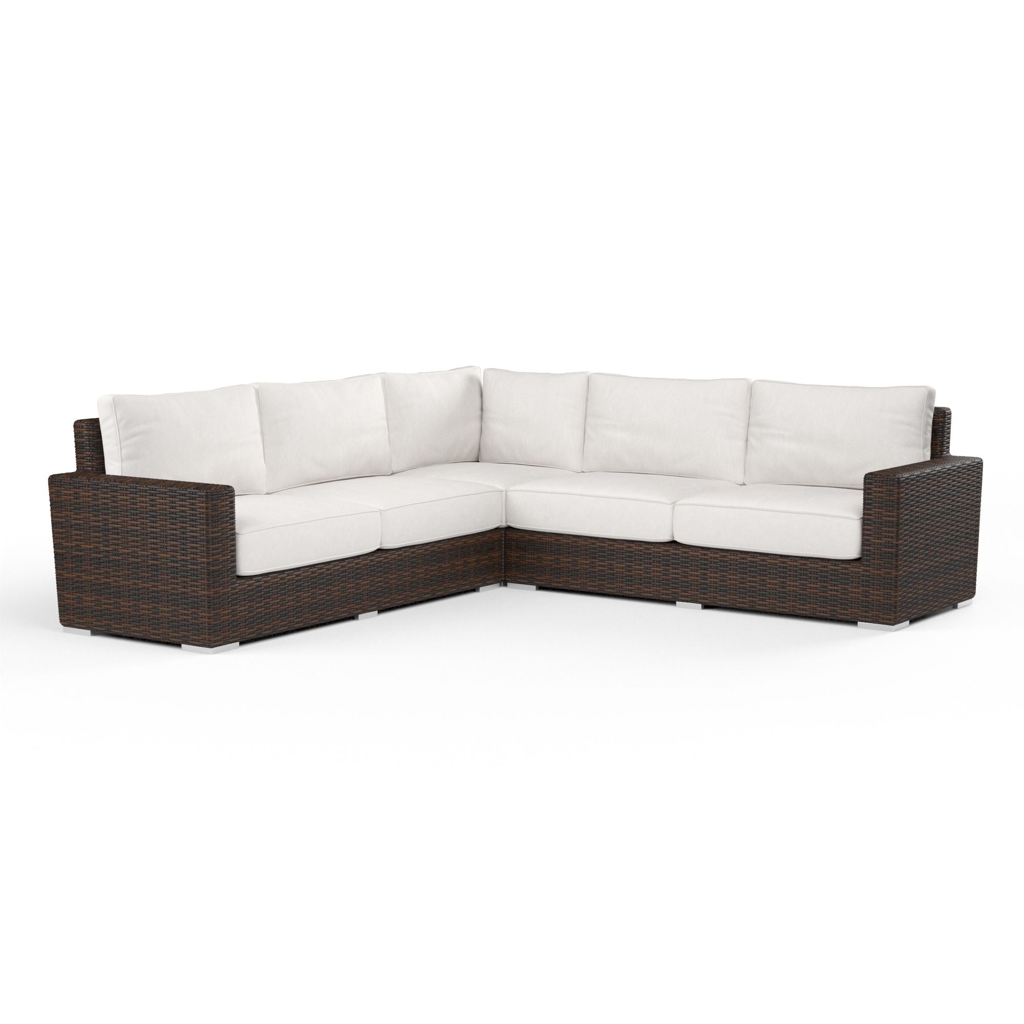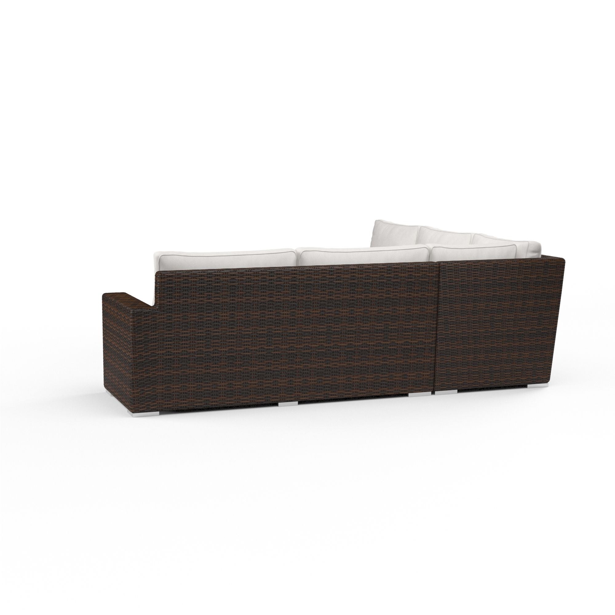 Inspired by the coastal town of its namesake, The Montecito Sectional offers purely sophisticated outdoor living. Expertly wrapped in a rich Cognac multi-colored weave, Montecito mimics natural materials with low maintenance in durable virgin resin wicker. Absolute comfort is provided with its generously sized frame and advanced seating support. Fully welded powder-coated aluminum frame Wrapped in virgin PE Resin Wicker in Cognac Sunset West Progressive Springing System Technology Weather resistant, high-resiliency foam cushions Stocked in Premium Sunbrella fabric in Canvas Flax Non-marking plastic glides Commercial Quality Construction Custom Cushions available in approx. 4 weeks. Montecito is part of the Cognac color story, and coordinates well with Monterey and pieces from the Bazaar.