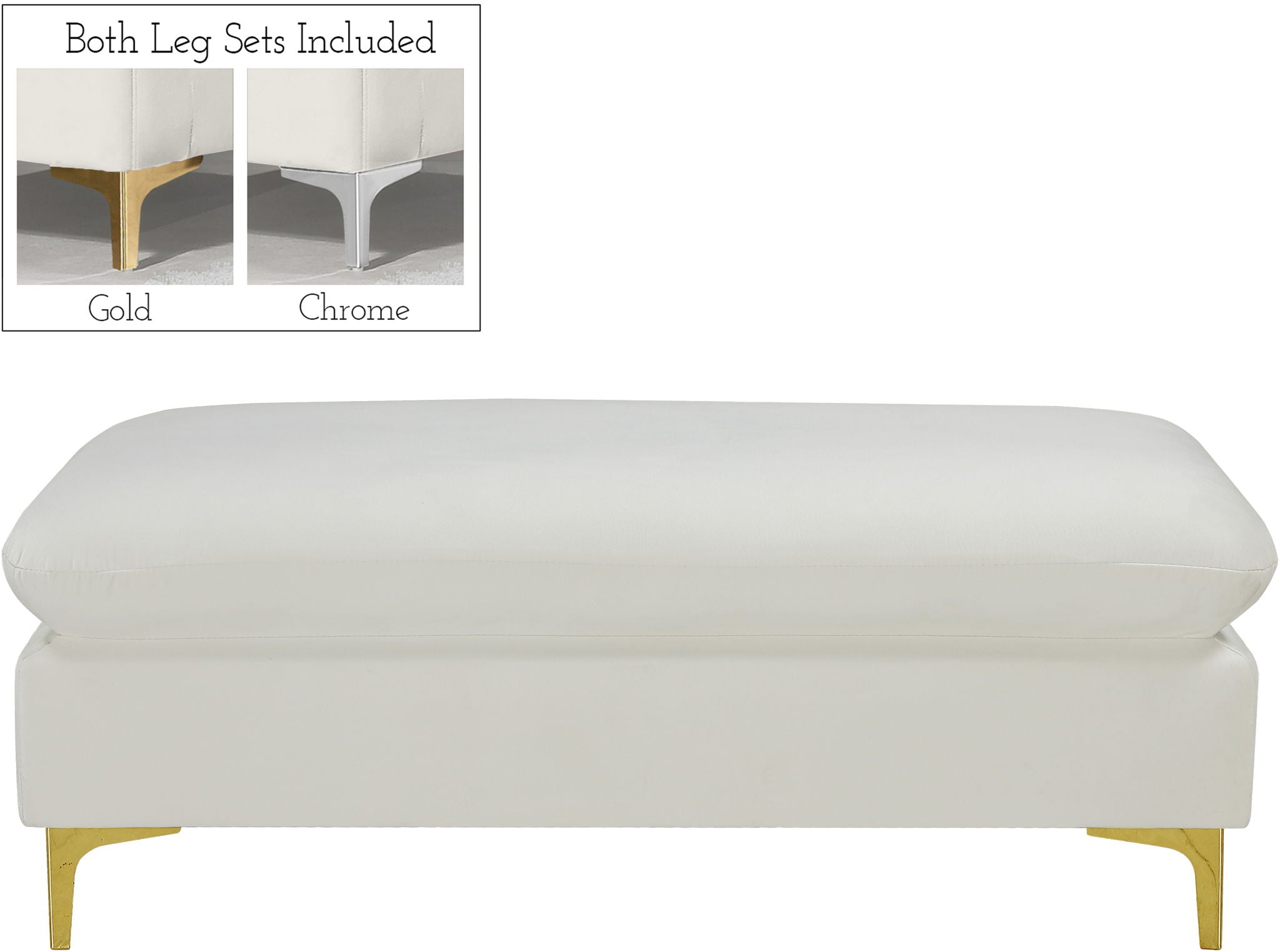 Prop your feet and legs up like a boss with this Naomi Ottoman as the newest addition to your home decor plans. This elegant ottoman is covered in rich velvet to provide a neutral style boost to your room while pampering your feet in comfort at day's end. Customize its look with your choice of or legs; both are included so that you can give this plush stool a personalized spin. Place it at the foot of the bed for a regal look, add it to a foyer for a spot to rest while putting on shoes, or bring it into the living room for an extra seat as needed.