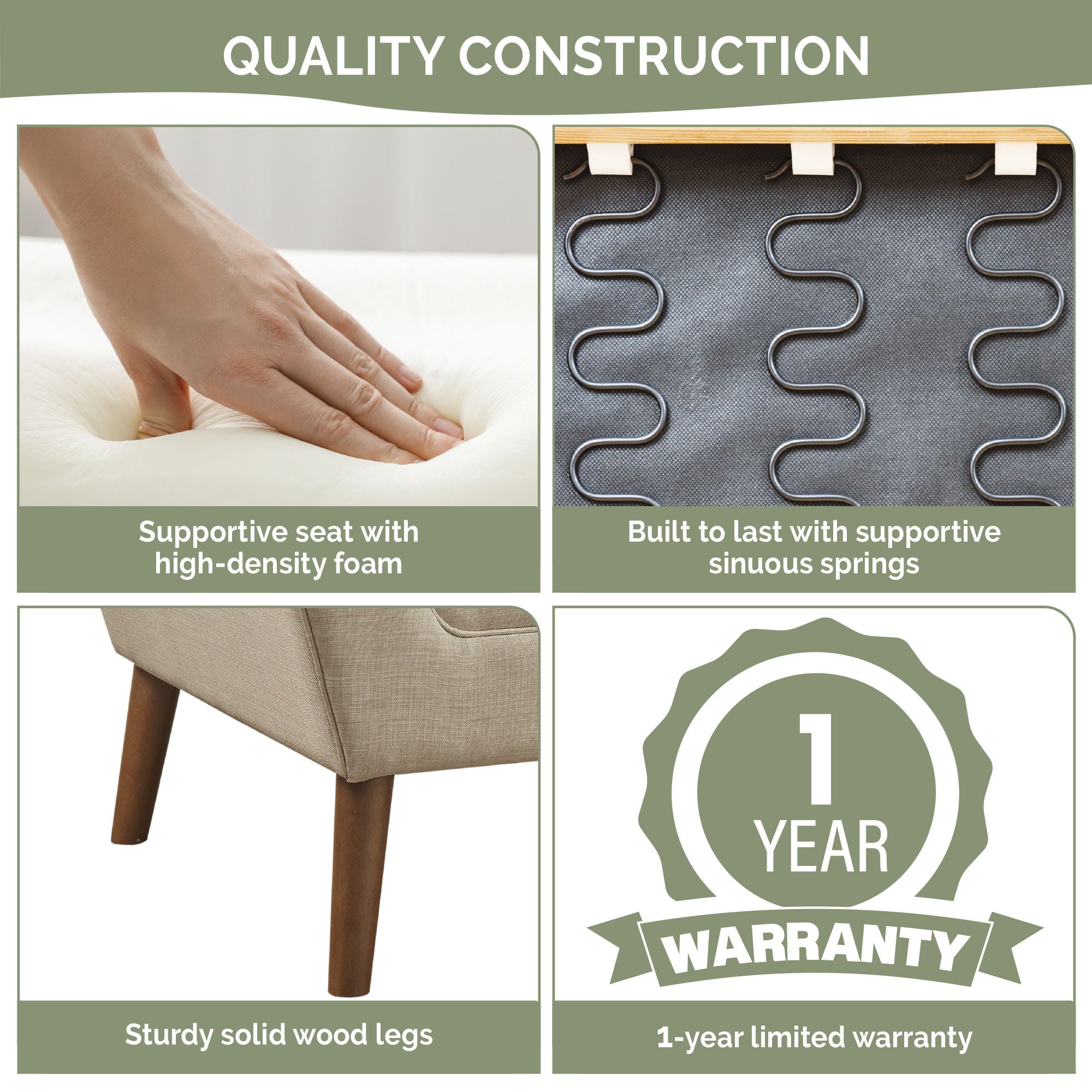 - Frame Composition: Solid wood + plywood frame Leg Material: Birch wood Wood Finish 01: Pecan Fabric Composition: 100% Polyester Cushion or Upholstery Fill Material: Foam Arm Material: Solid wood + plywood + upholstery