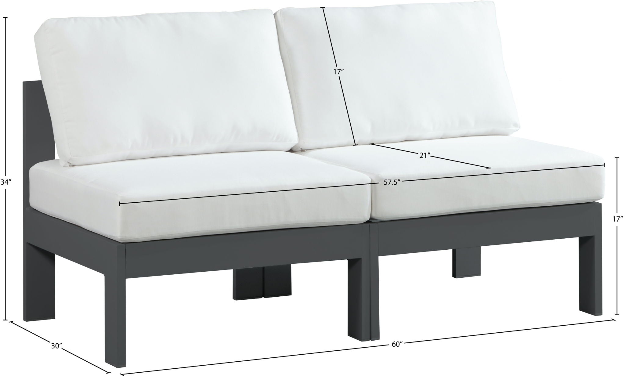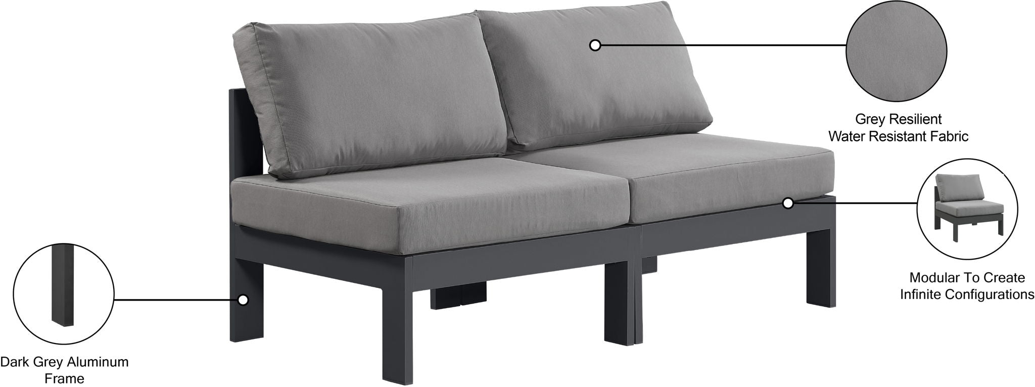 Nizuc - Outdoor Patio 2 Seat Armless Modular Sofa With Gray Frame