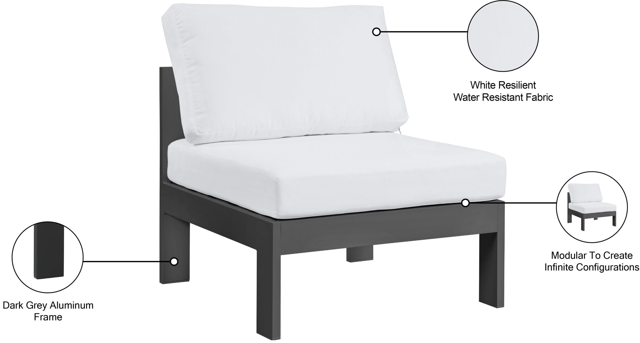 Nizuc - Outdoor Patio Armless Chair With Gray Frame - White