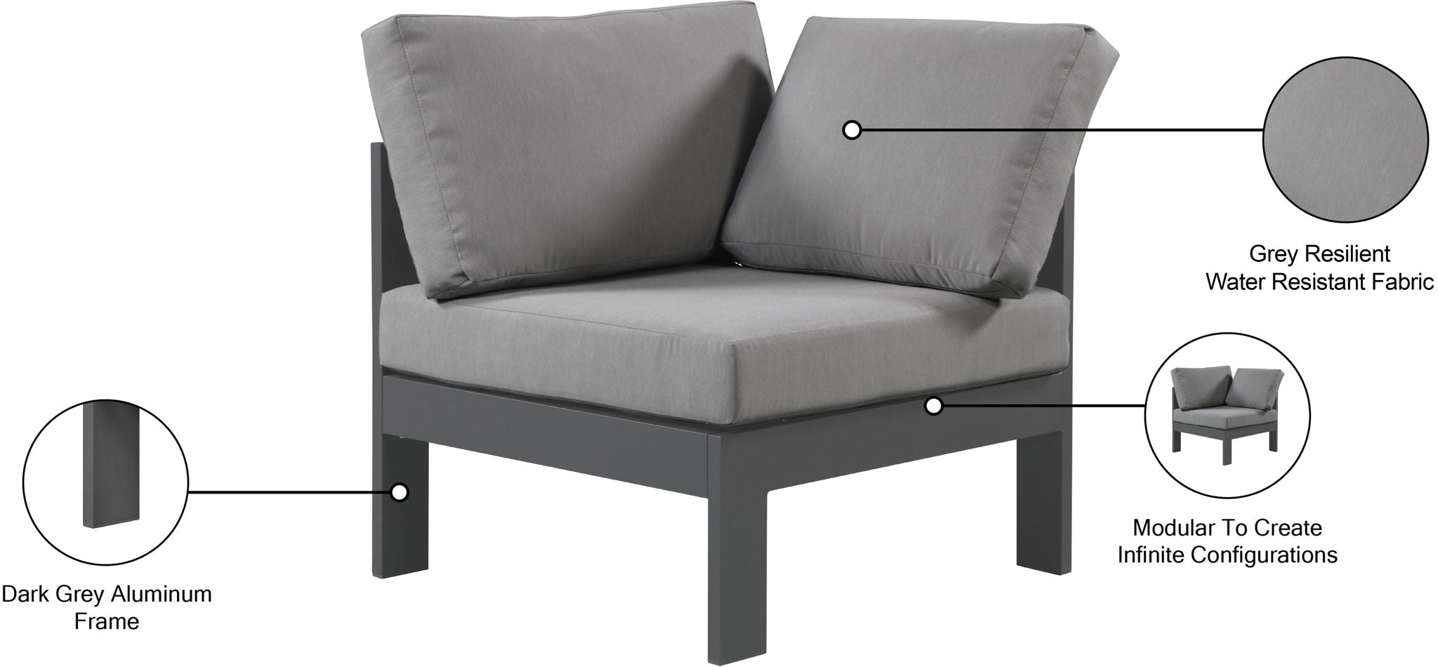 Nizuc - Outdoor Patio Corner Chair With Gray Base - Gray