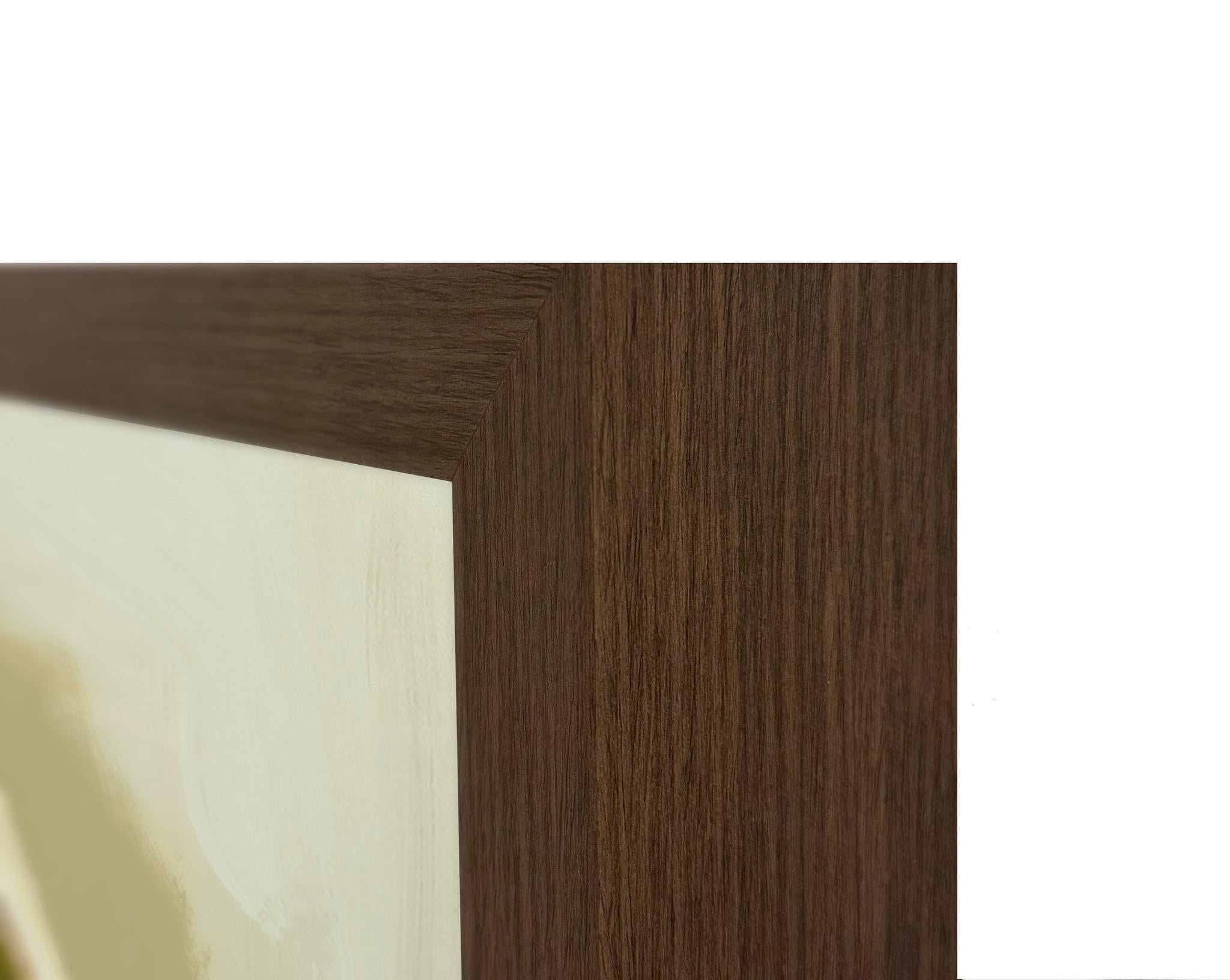 Featuring bold shapes and a balanced mix of muted tones, Observe painting by Buddy Whitlock evokes quiet sophistication. Framed in a thick walnut shadow frame, it seamlessly complements contemporary and transitional interiors.