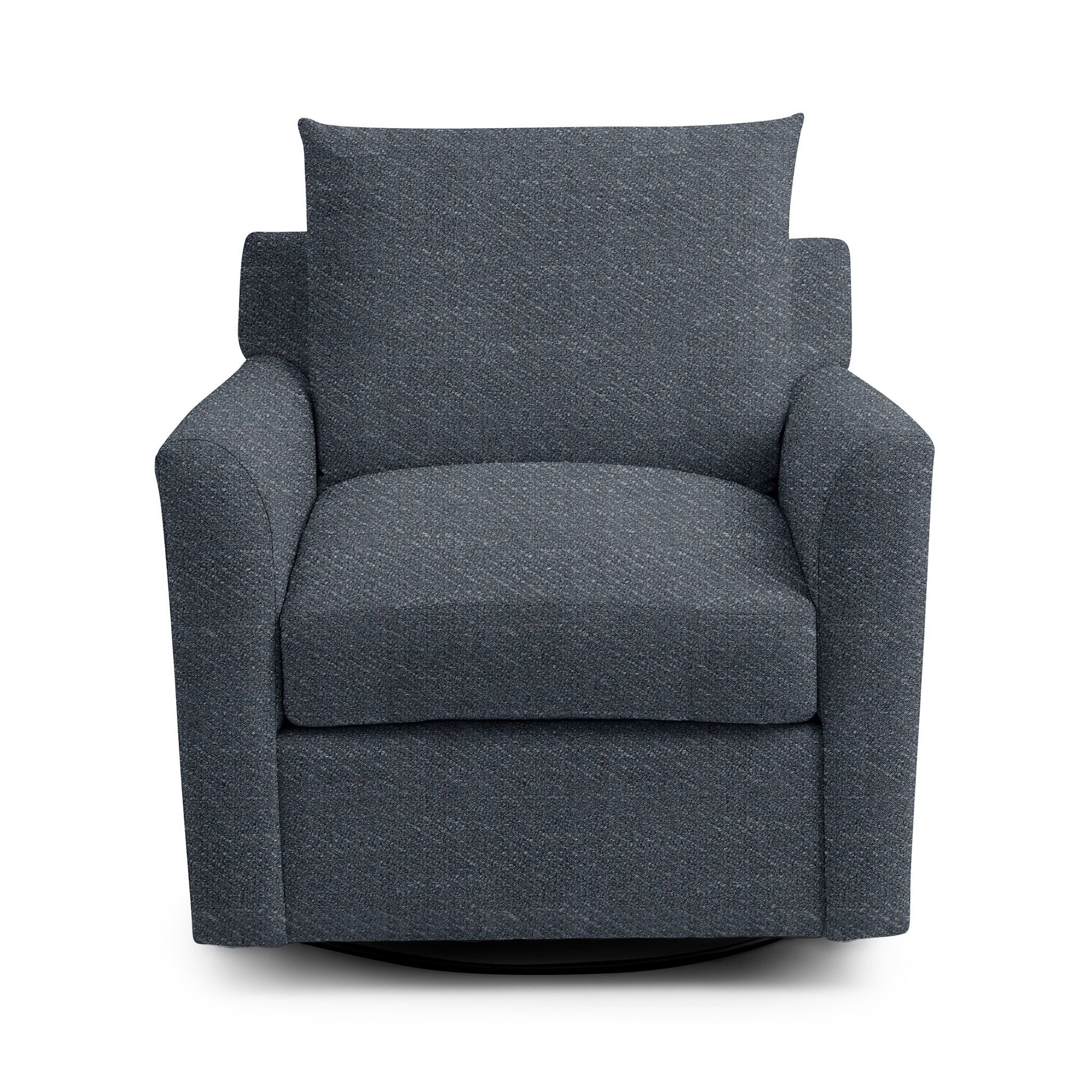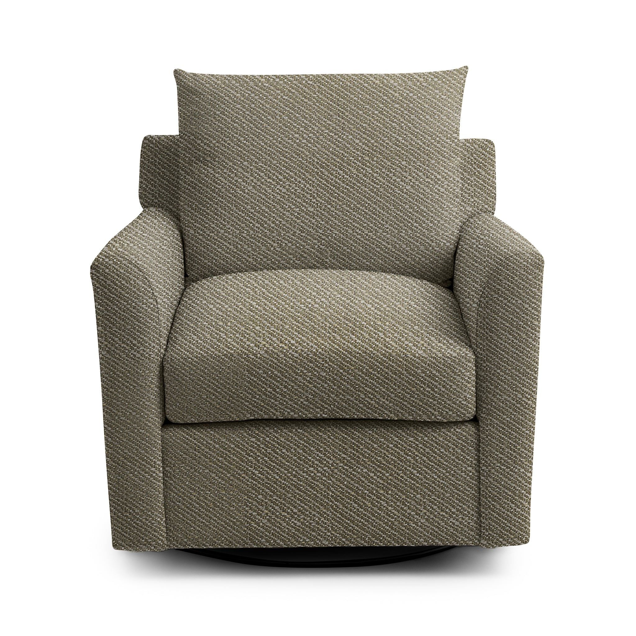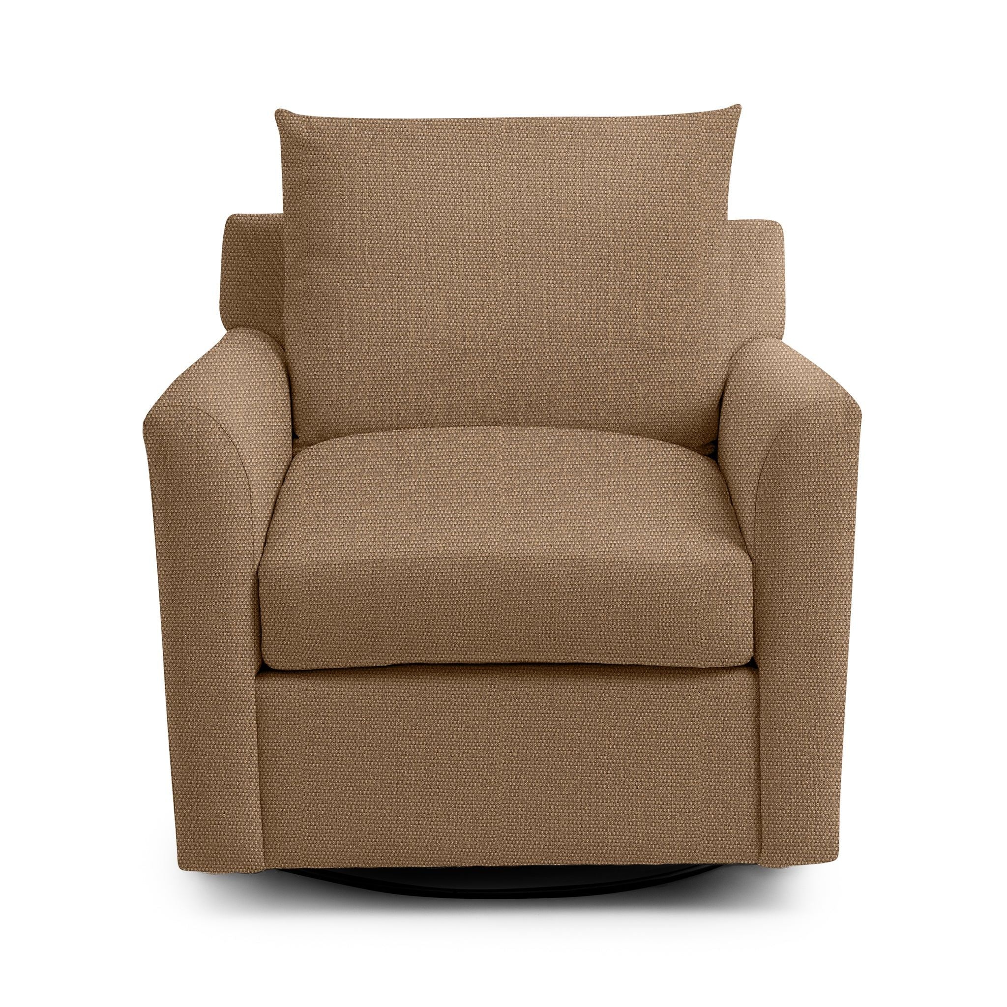 Create a welcoming space for comfort and connection with this beautifully crafted swivel accent chair, proudly made in the USA and upholstered in durable olefin fabric. Deep cushioning and a plush back pillow invite you to relax, unwind, and enjoy meaningful moments with family and friends. The smooth swivel base allows easy movement and effortless conversation, while the tailored silhouette brings timeless style. Finished in a soft, neutral tone, this chair enhances living rooms, bedrooms, and gathering spaces with lasting comfort and everyday versatility.