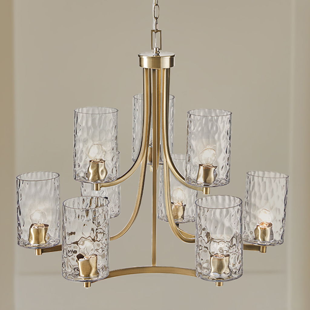 Opulentia - 9-Light Round Tiered Chandelier With Textured Glass Shades - Antique Brass