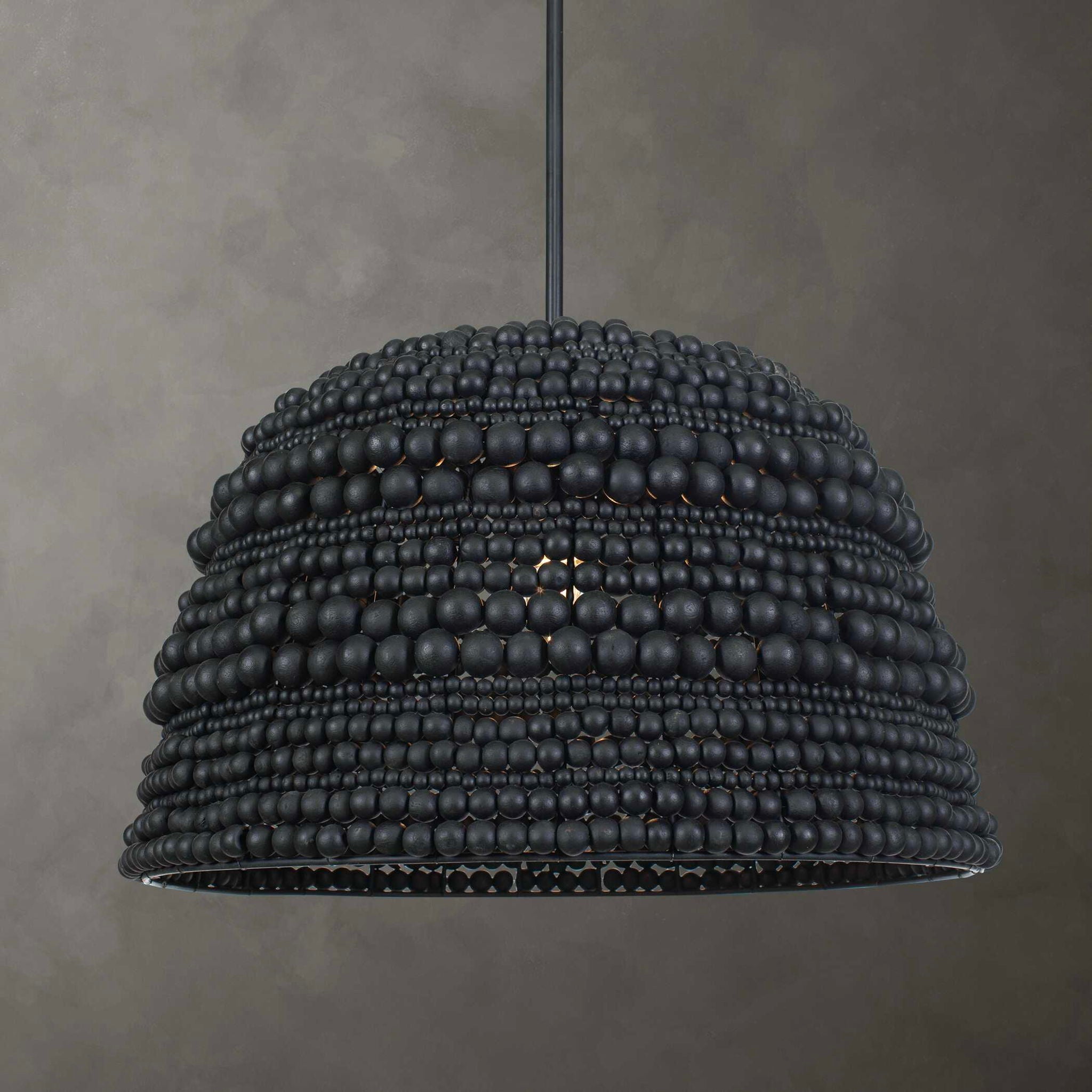 Distinguished Rich Black Wooden Beads In Various Sizes Make Up This Statement Pendant With Matte Black Details. 1-60 Watt Max Edison Socket. Bulbs Not Included. Supplied With 15' Wire, 3-12" Stems And 1-6" Stem For Adjustable Installation.