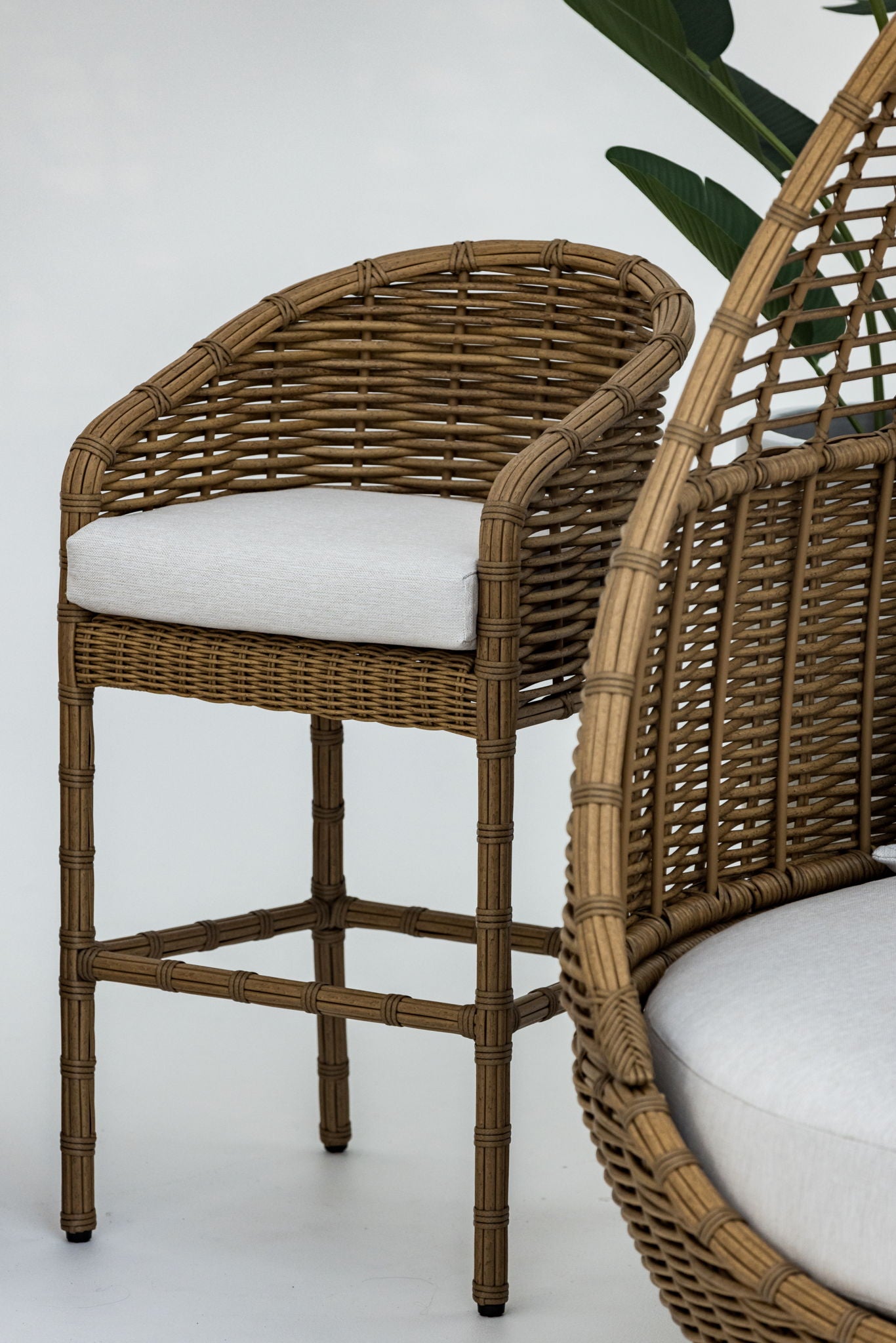 The Playa stool is crafted with a generously oversized frame and plush pillow cushions for sumptuous comfort. Playa is wrapped in Resin Wicker with finish bringing a tropical feel to any space.