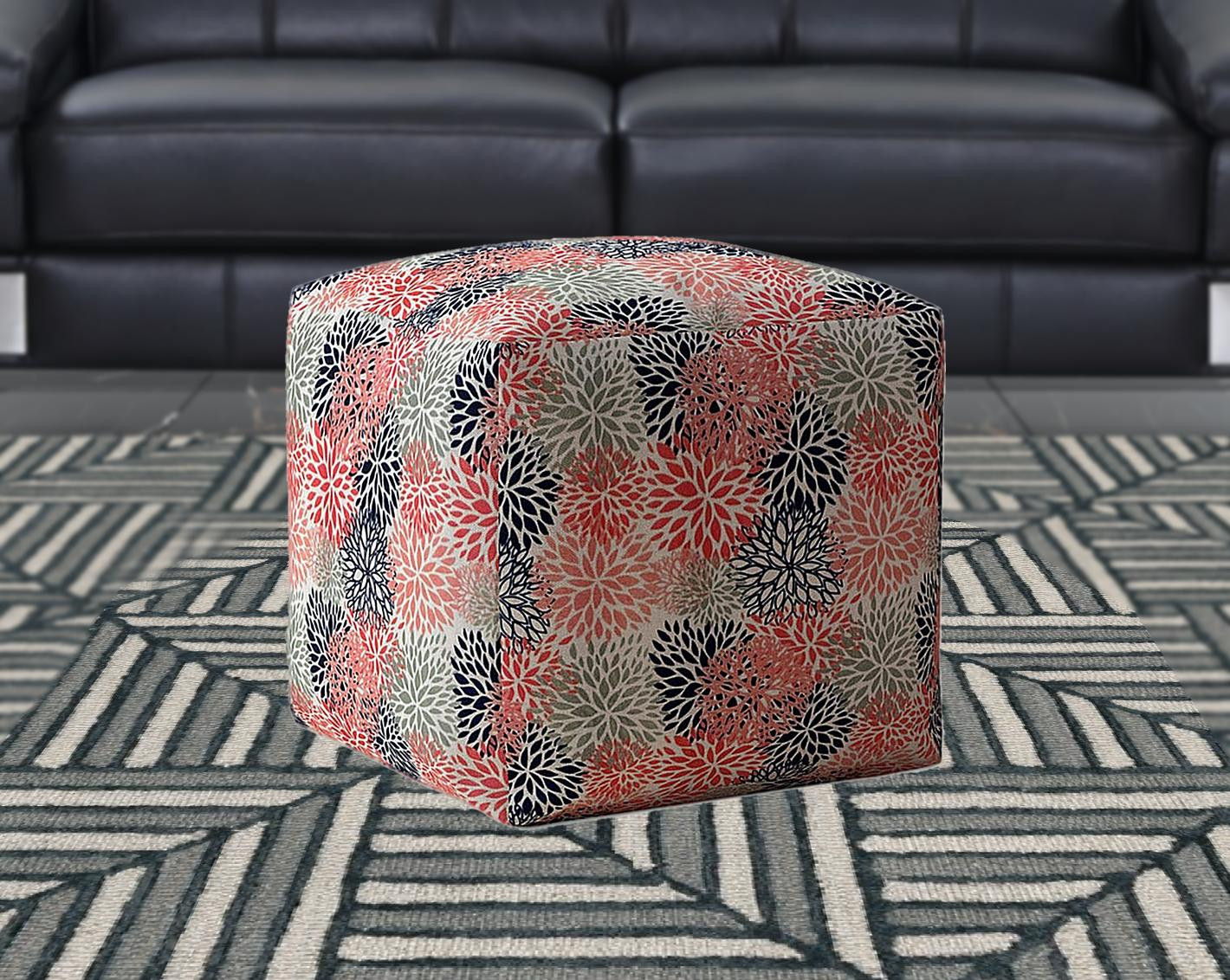 Optimize your space and add some charm to your room with the 17" coral polyester floral pouf cover. Expertly upholstered with padding and soft 100% polyester in a floral pattern, this ottoman is as comfortable as it is good looking. Easy to blend into most any room, a ottoman is a way to add a good looking accent to your space that can also be practical and useful. . 17" H x 17" W x 1" D