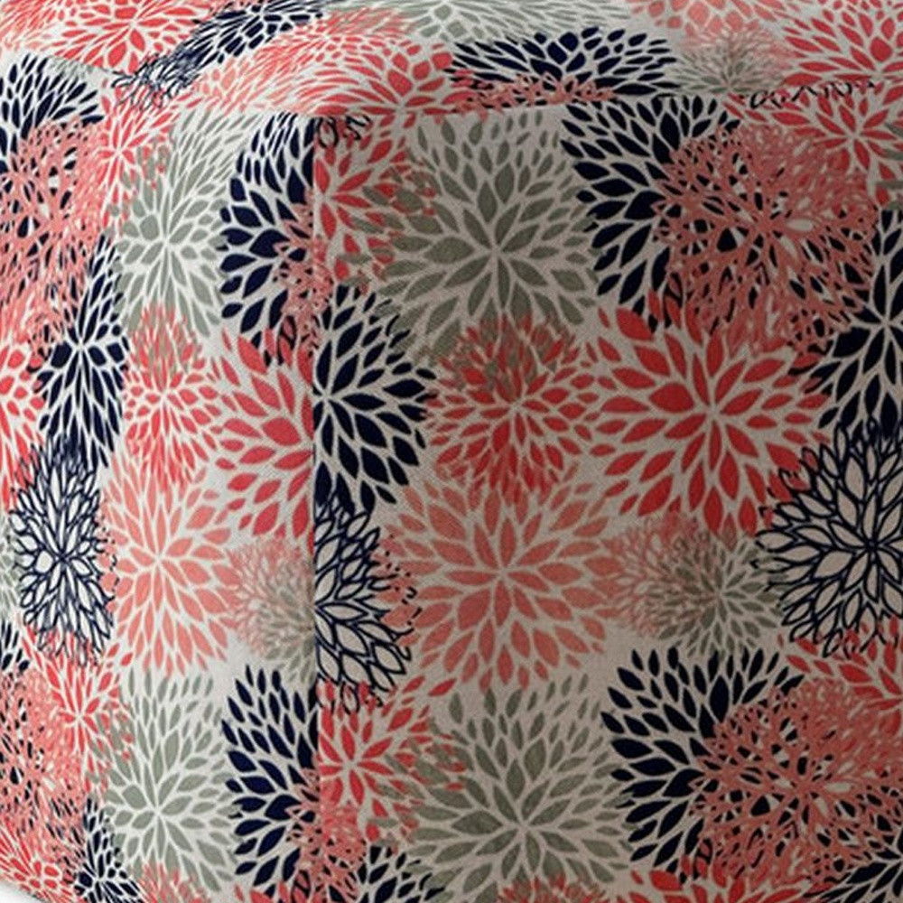 Polyester Floral Pouf Cover - Coral