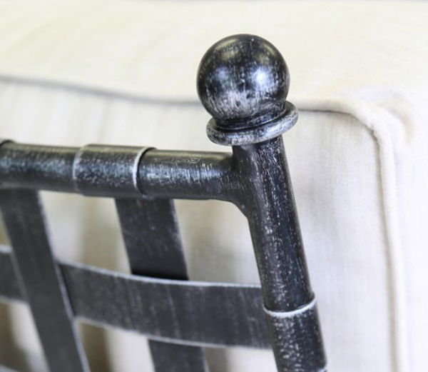Constructed in expertly crafted wrought iron, the Provence Sofa displays a woven back to emulate basket weave, and subtly brushed Century Pewter antique finish. Gently bowed arms and generous seat are scaled for absolute comfort. Wrought Iron frame with 5 step finish process Powder-coated with Century Pewter hand brushed finish Weather resistant, high-resiliency foam cushions Stocked in Premium Sunbrella fabric in Canvas Flax Commercial Quality Construction Custom Cushions available in approx. 4 weeks Provence is part of the Classic color story and adds a timeless touch when paired with Coronado and many other Sunset West collections.