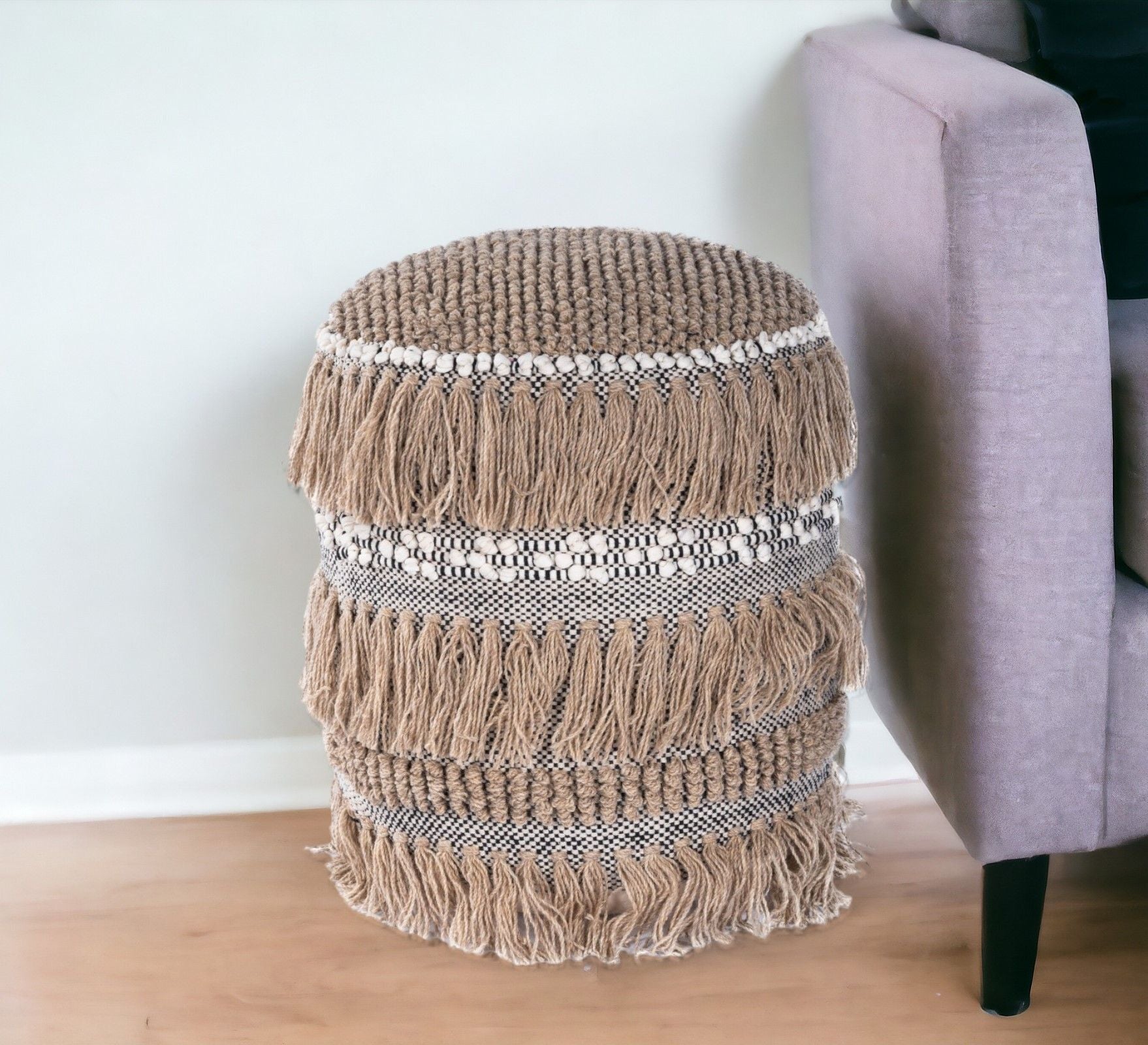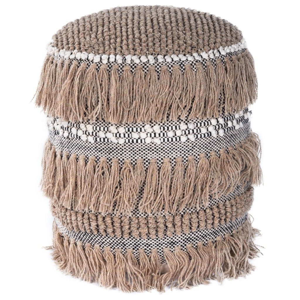 Round Pouf Ottoman - Beige 18.0"W x 18.0"D x 21.0"H - 5.0 lb