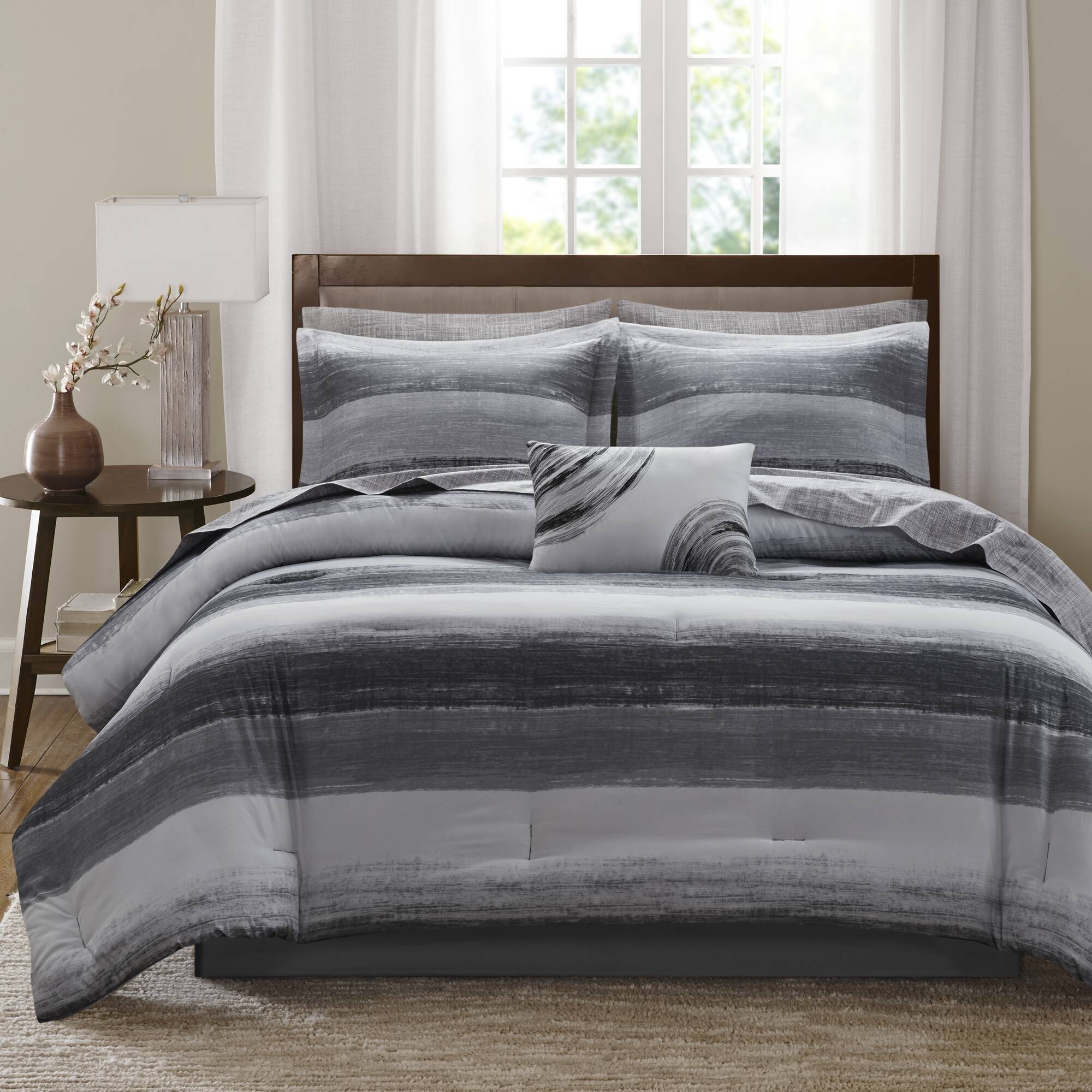 Saben - Queen 9 Piece Comforter Set With Bed Sheets - Black