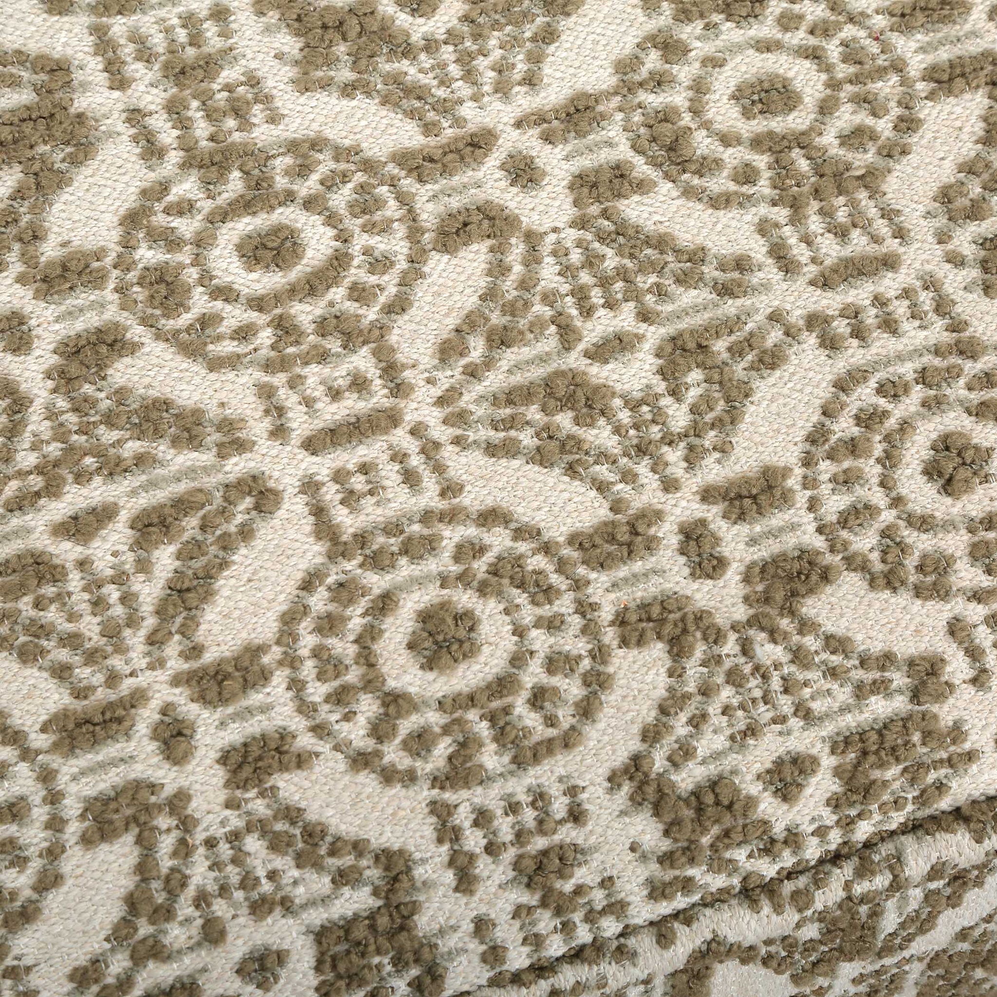 Compact Yet Impactful, The Satoria Small Bench Offers A Touch Of Refined Style. Upholstered In A Rich, Textural Boucle Featuring An Olive Green Medallion Lattice Motif.